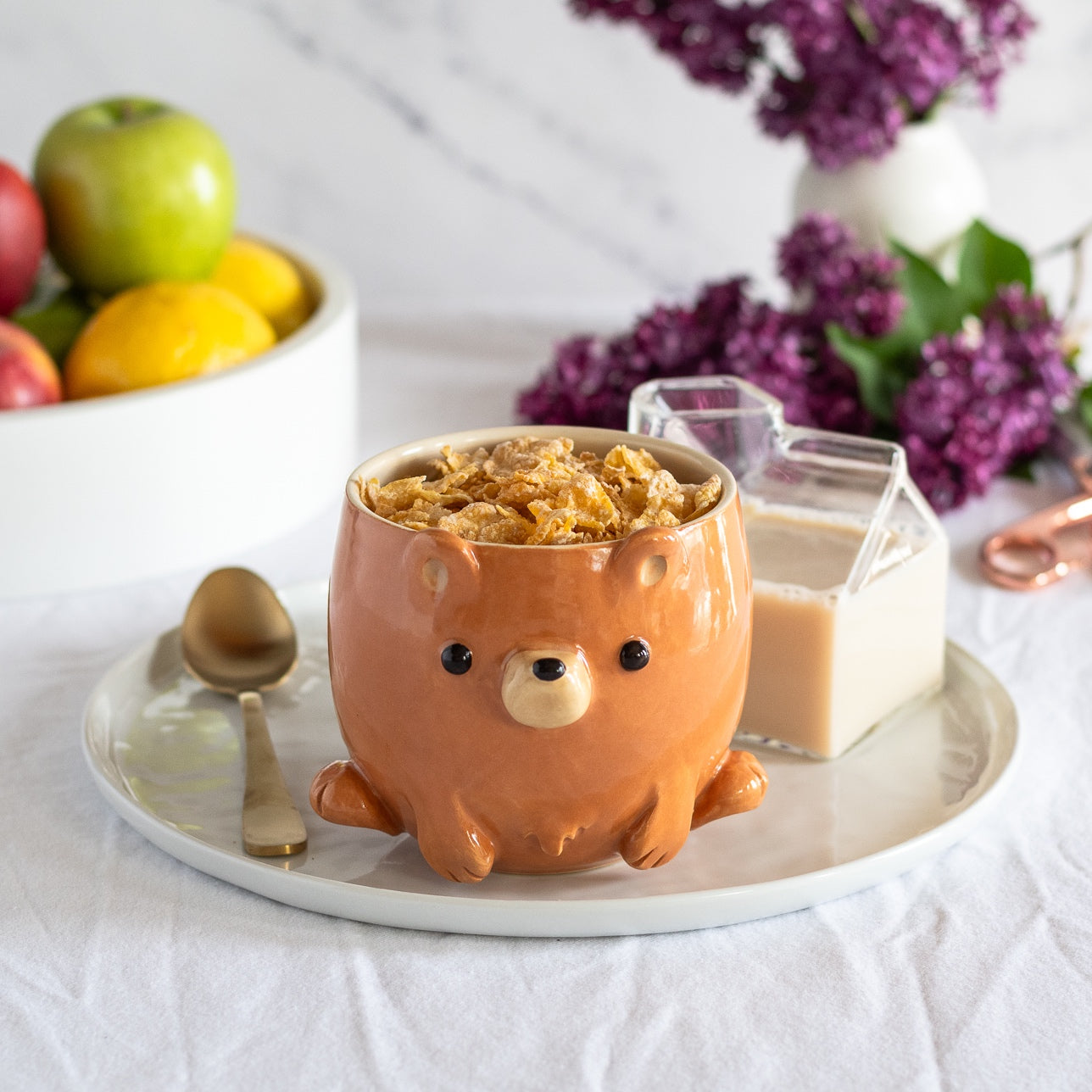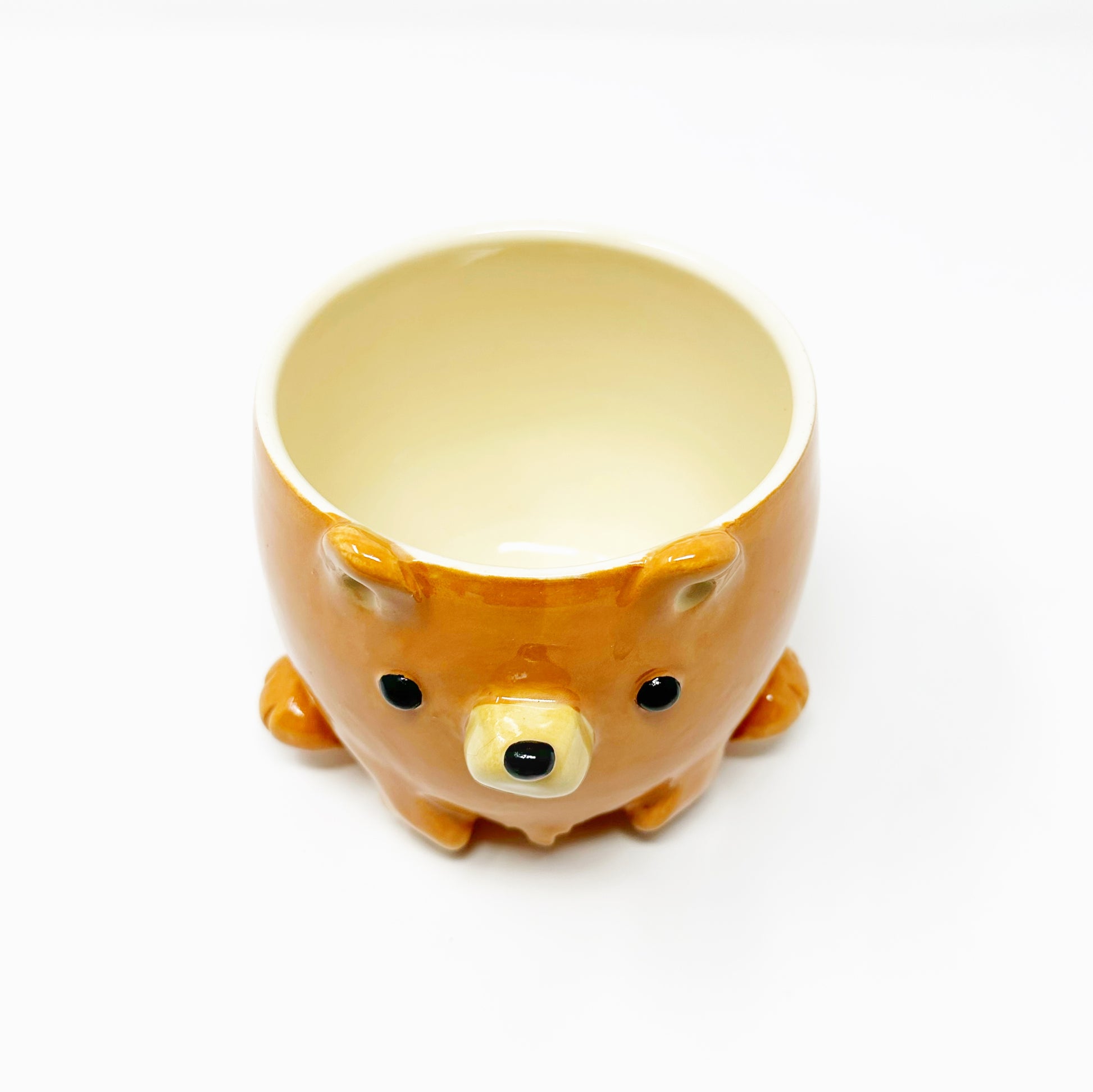 Our bowls are lovingly created on the wheel and then the features are built on by hand. Since all of our items are built one at a time, no two are exactly the same. Our creations are also hand painted adding to the unique design on every piece. You may be able to see our hands at work in the brush strokes of the glaze.