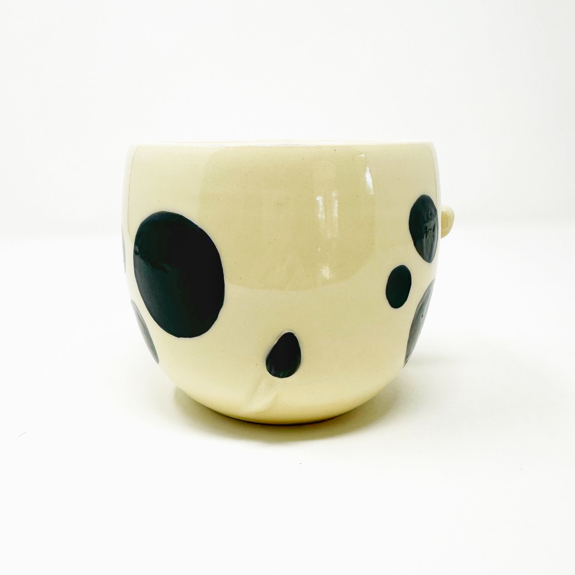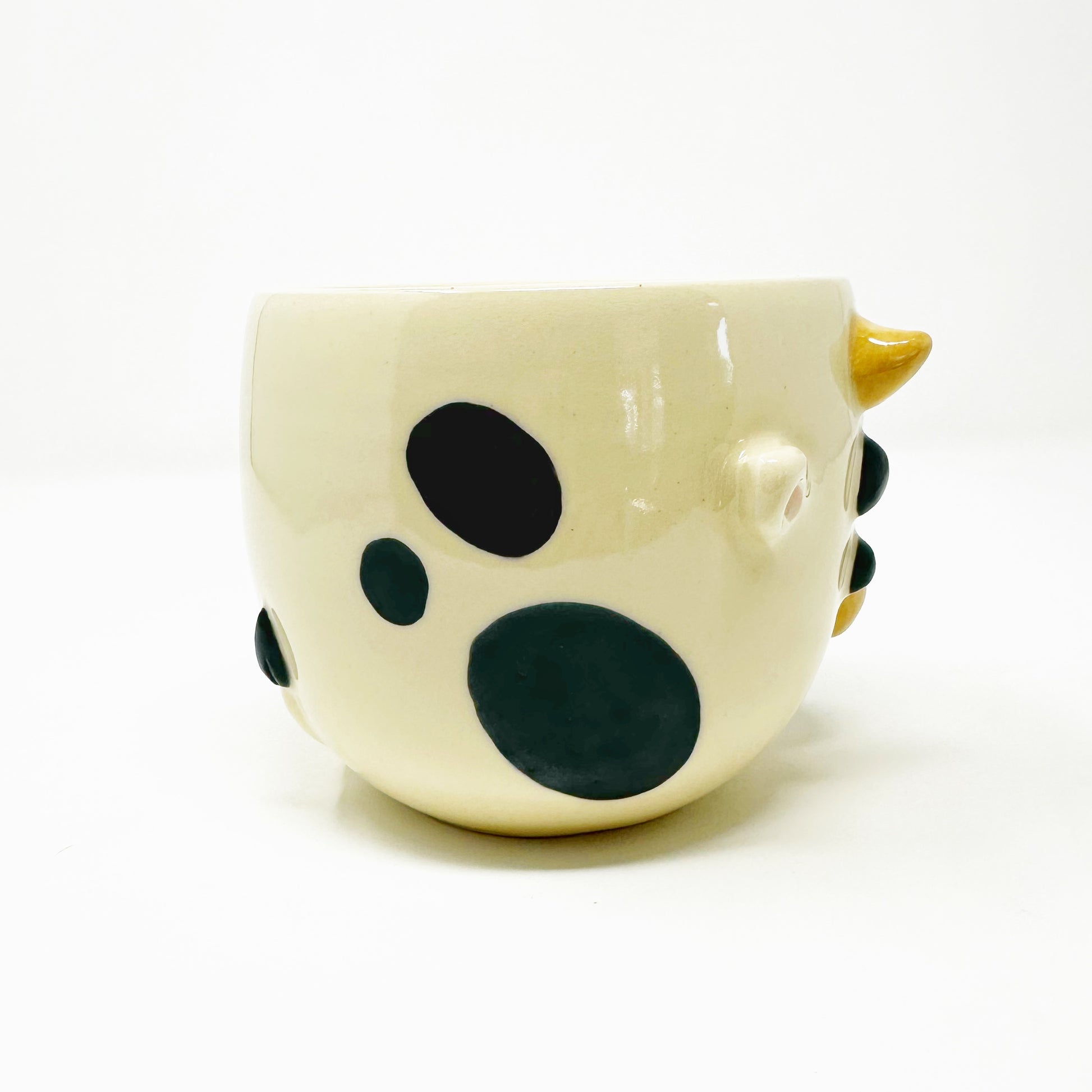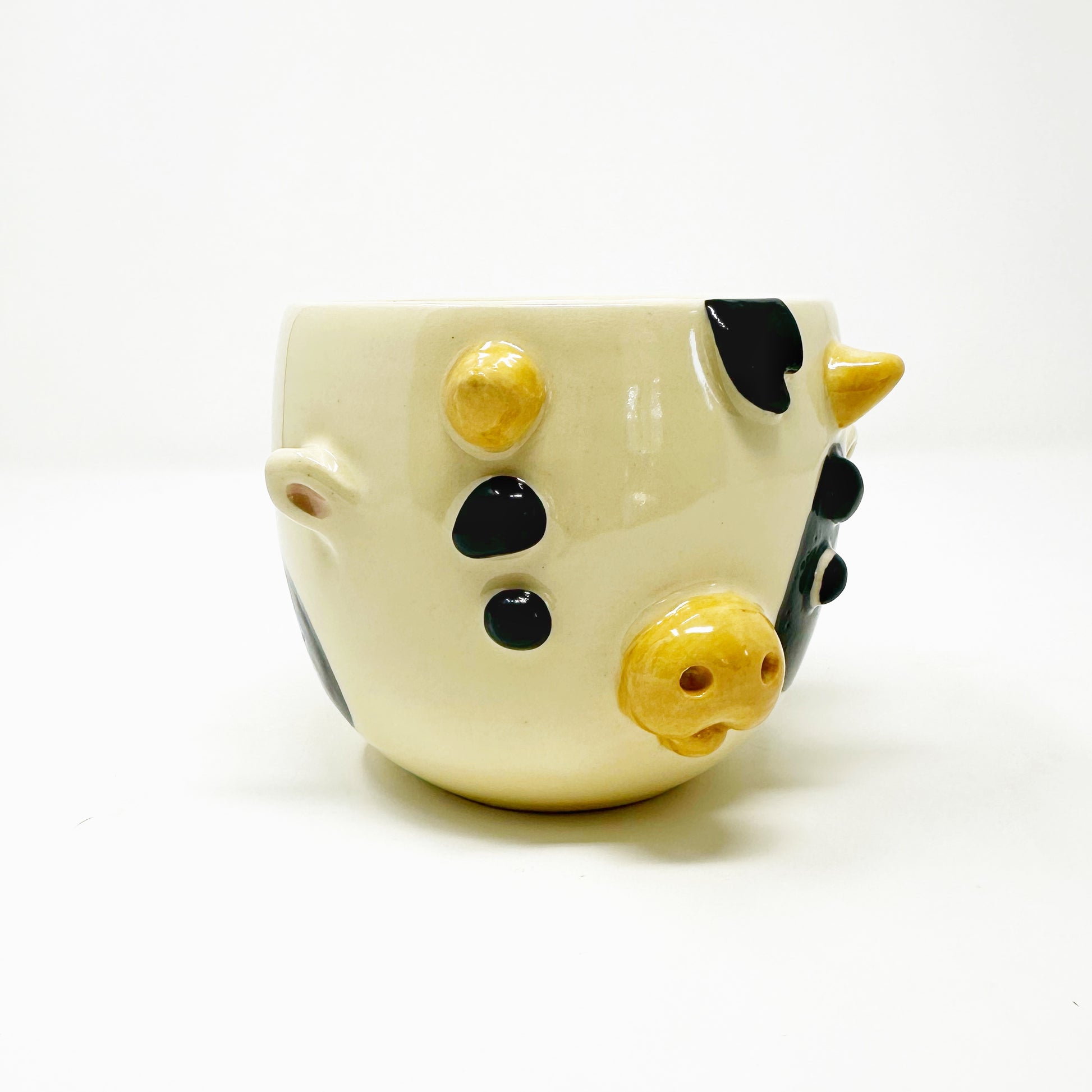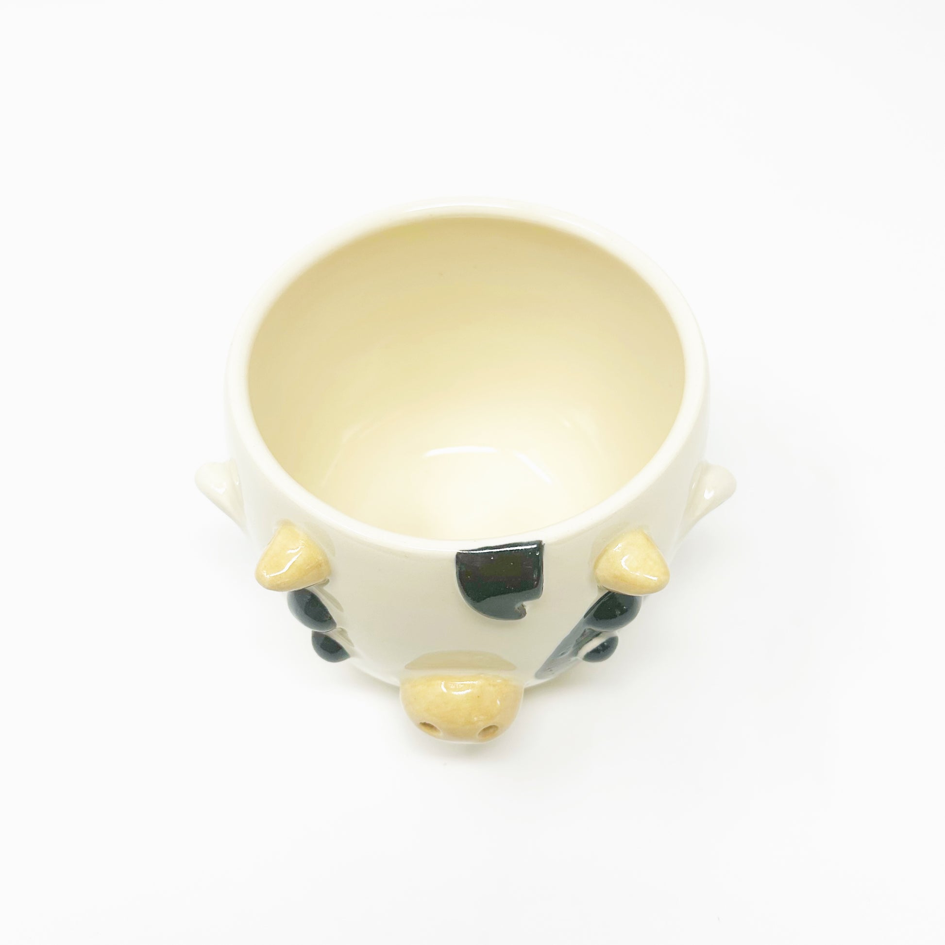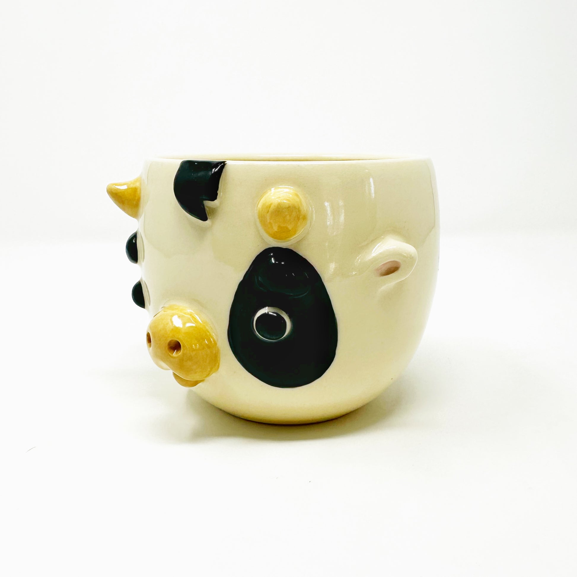 So glad Sarah and Blair made the dairy cow bowl available! It is a mirror image of the dairy cow mug so the eye patch is on the opposite side. This makes for some variety and I feel like I have 2 different friends at the table instead of the same design. The inside is also yellow like the mug. I love using the cow bowl for treats like nuts, veggie sticks or small crackers. I can also use it for dips too. It is so versatile!