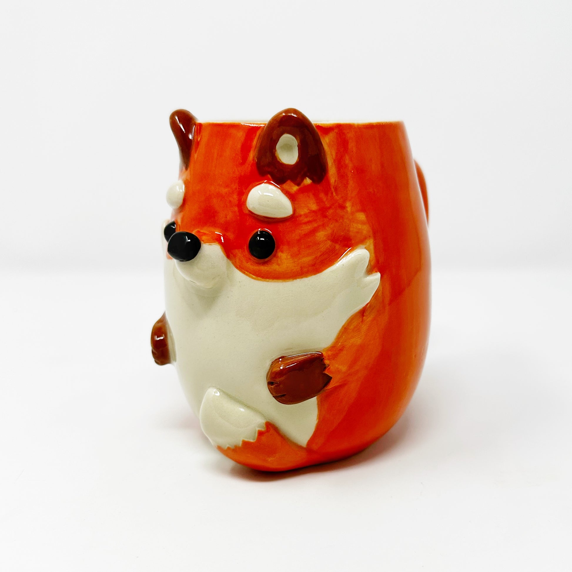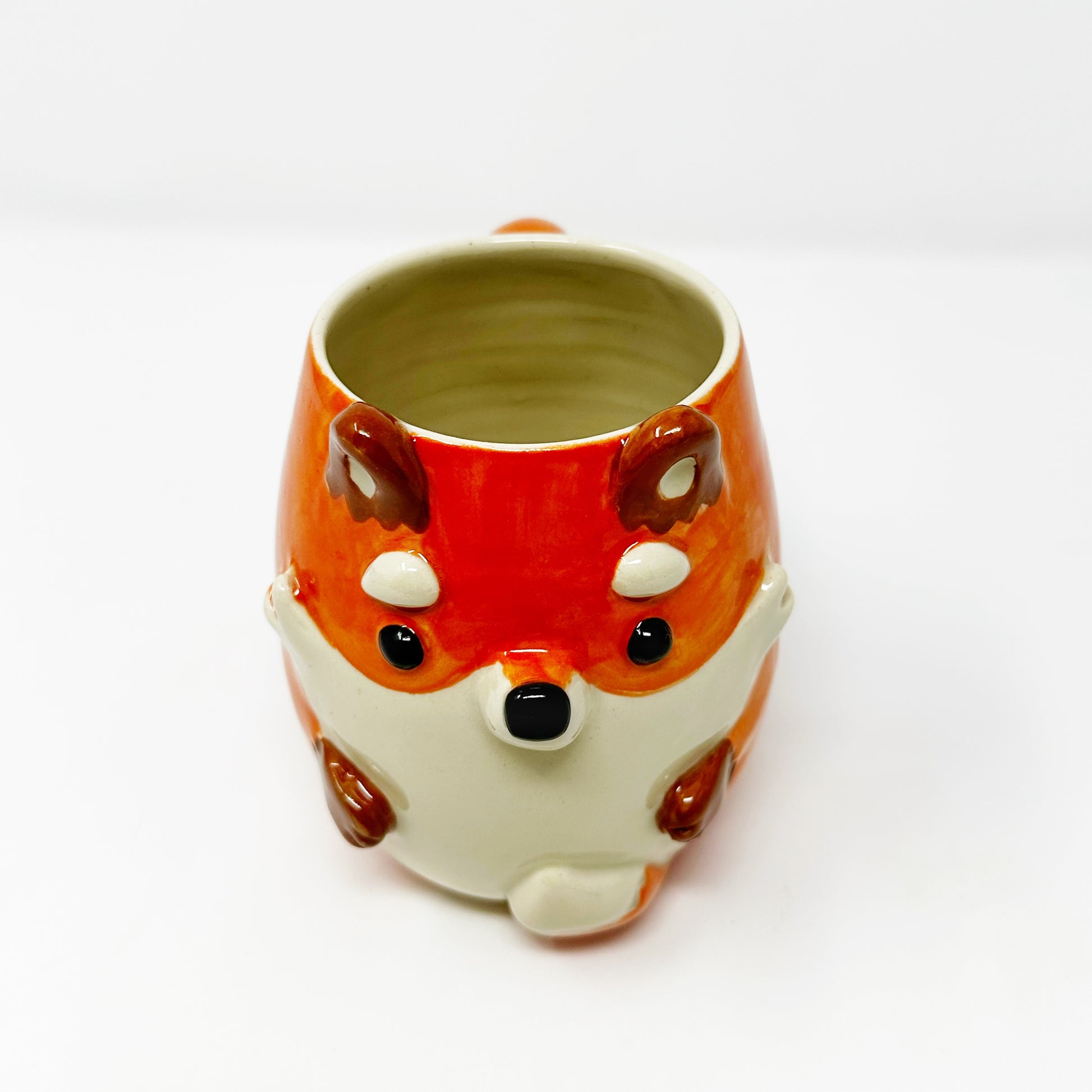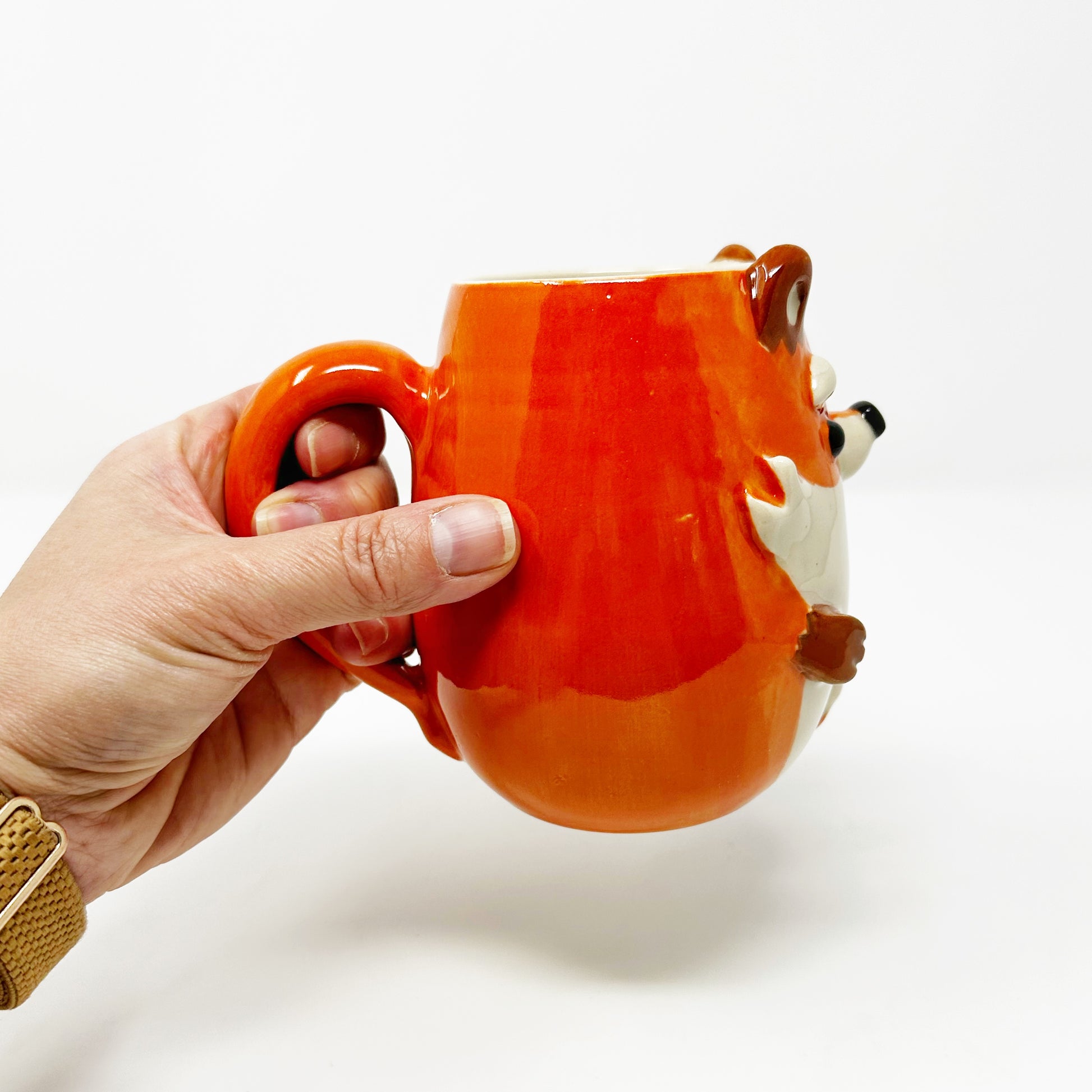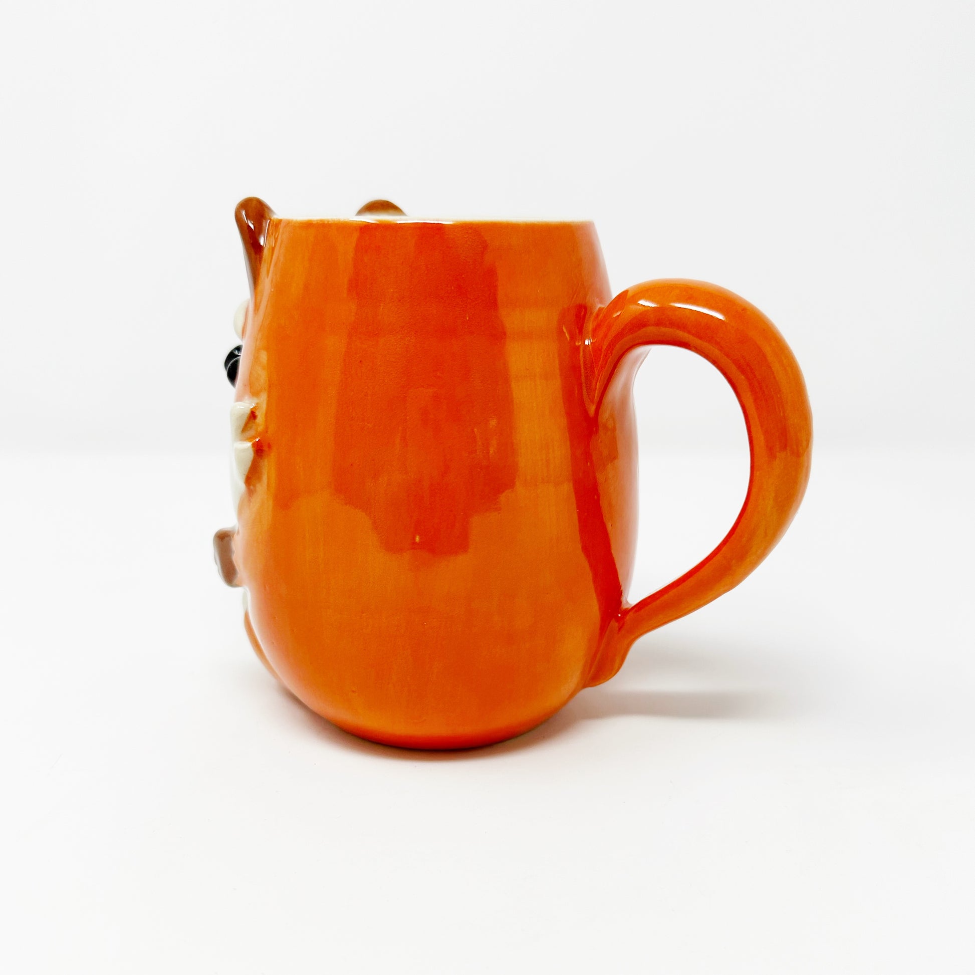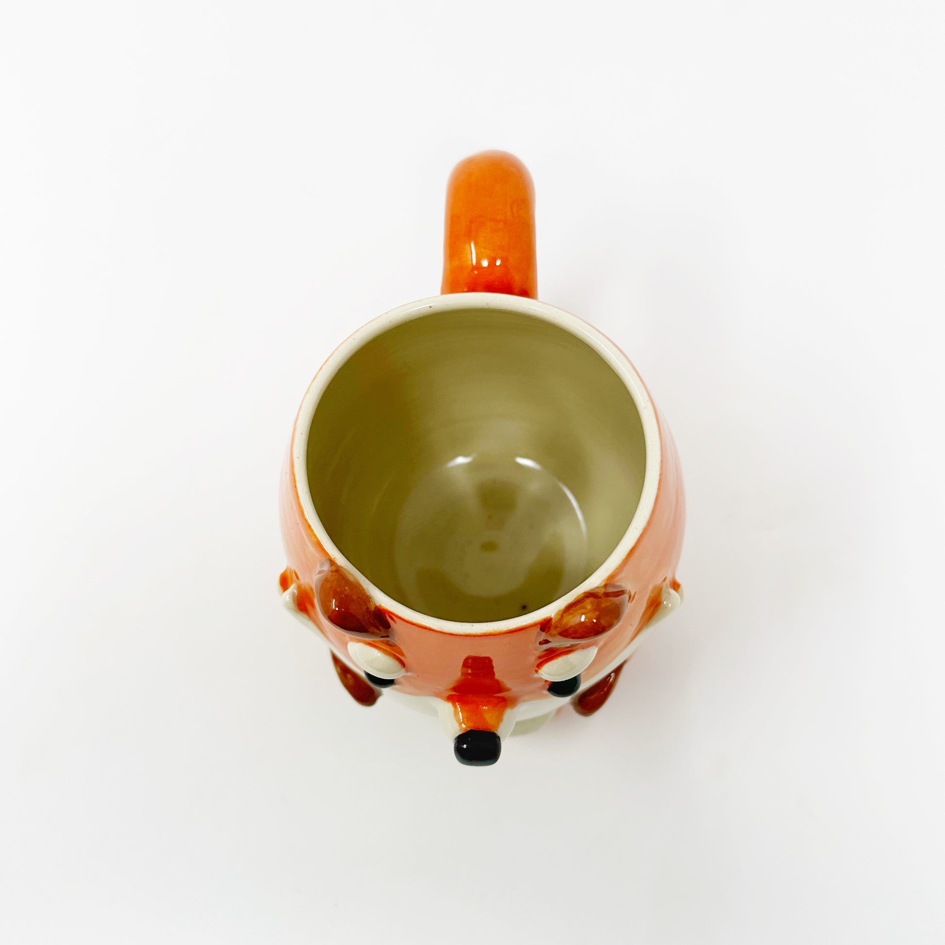 This mug is lovingly created on the wheel and then the features are built on by hand. Since all of our mugs are built one at a time, no two mugs are exactly the same. Our mugs are also hand painted adding to the unique design on every mug. You may be able to see our hands at work in the brush strokes of the glaze. You may also notice some texture in spots. This is part of our handmade quality and the uniqueness to every piece.
