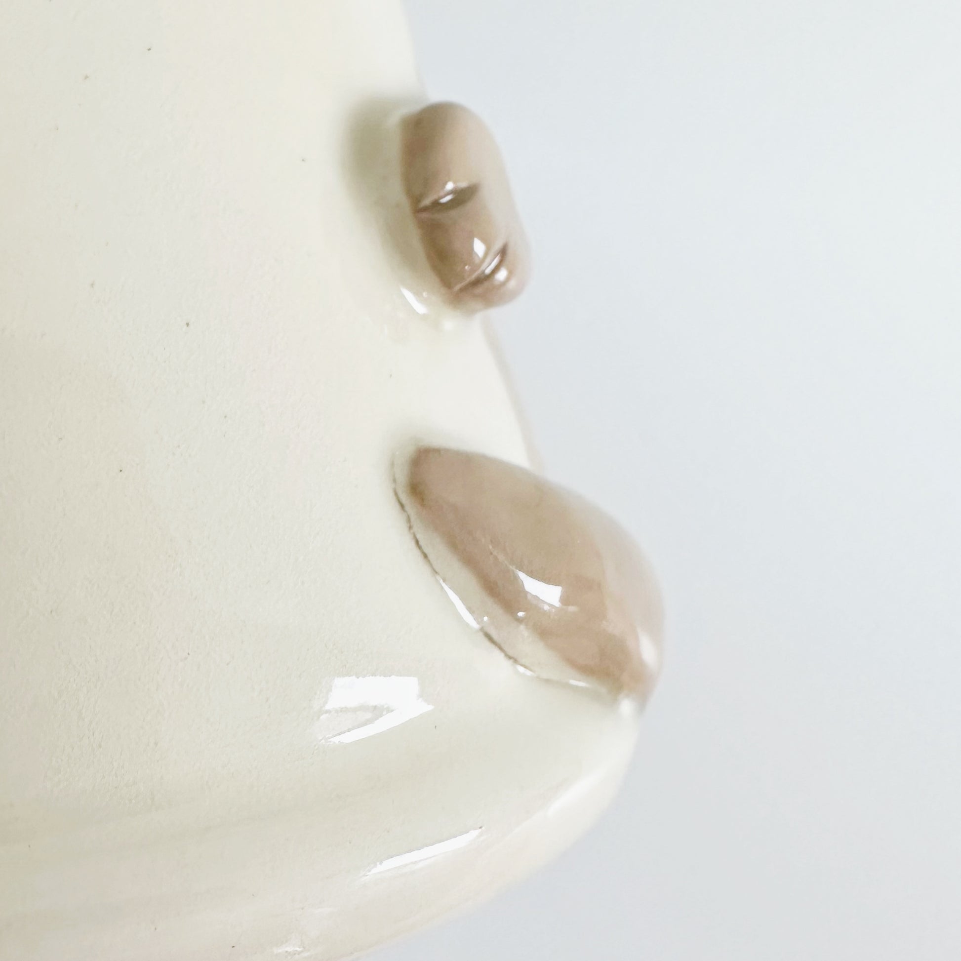 This mug is lovingly created on the wheel and then the features are built on by hand. Since all of our creations are built one at a time, no two are exactly the same. Our products are also hand painted adding to the unique design on every creation. You may be able to see our hands at work in the brush strokes of the glaze. You may also notice some texture in spots. This is part of our handmade quality and the uniqueness to every piece.