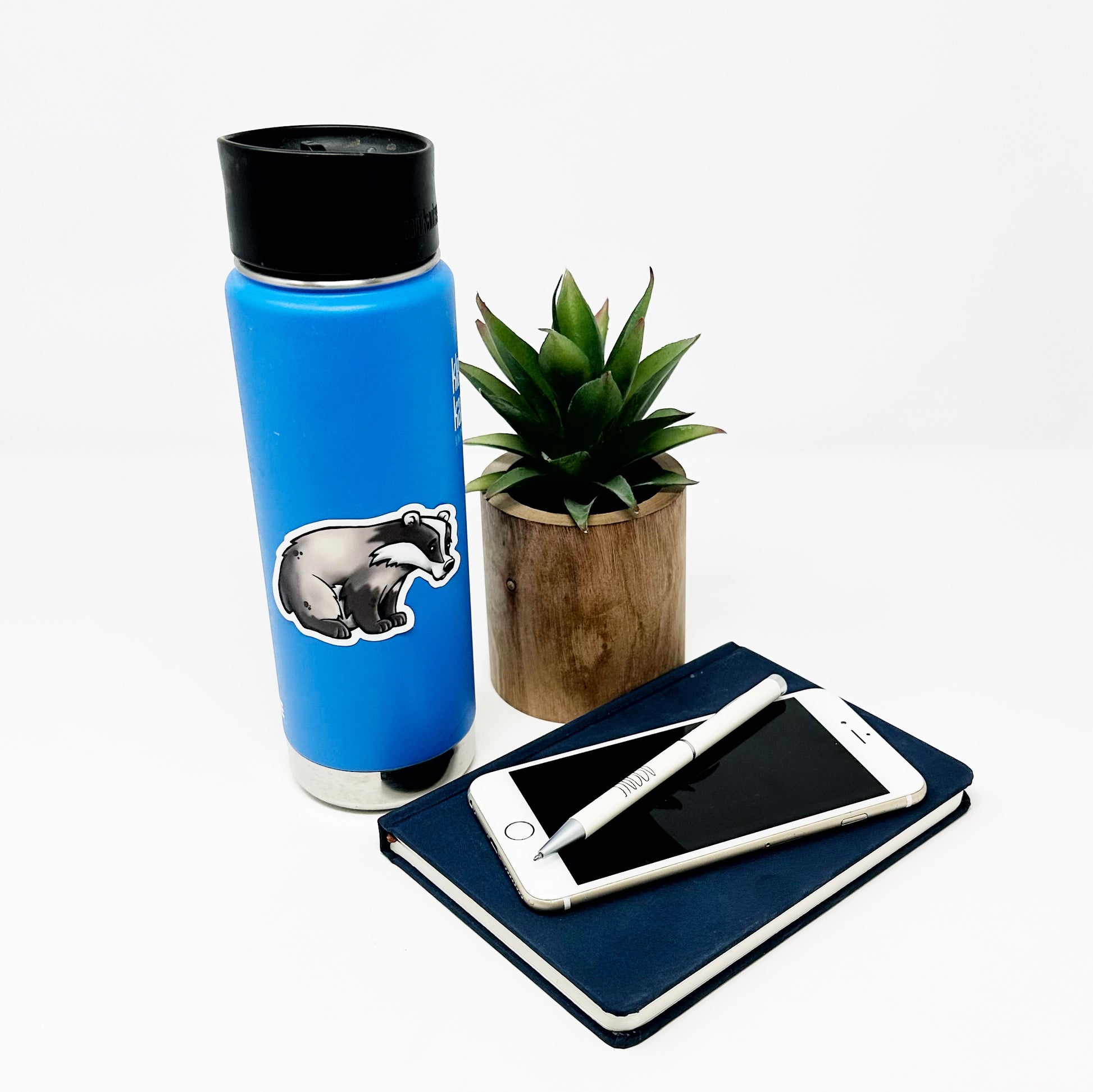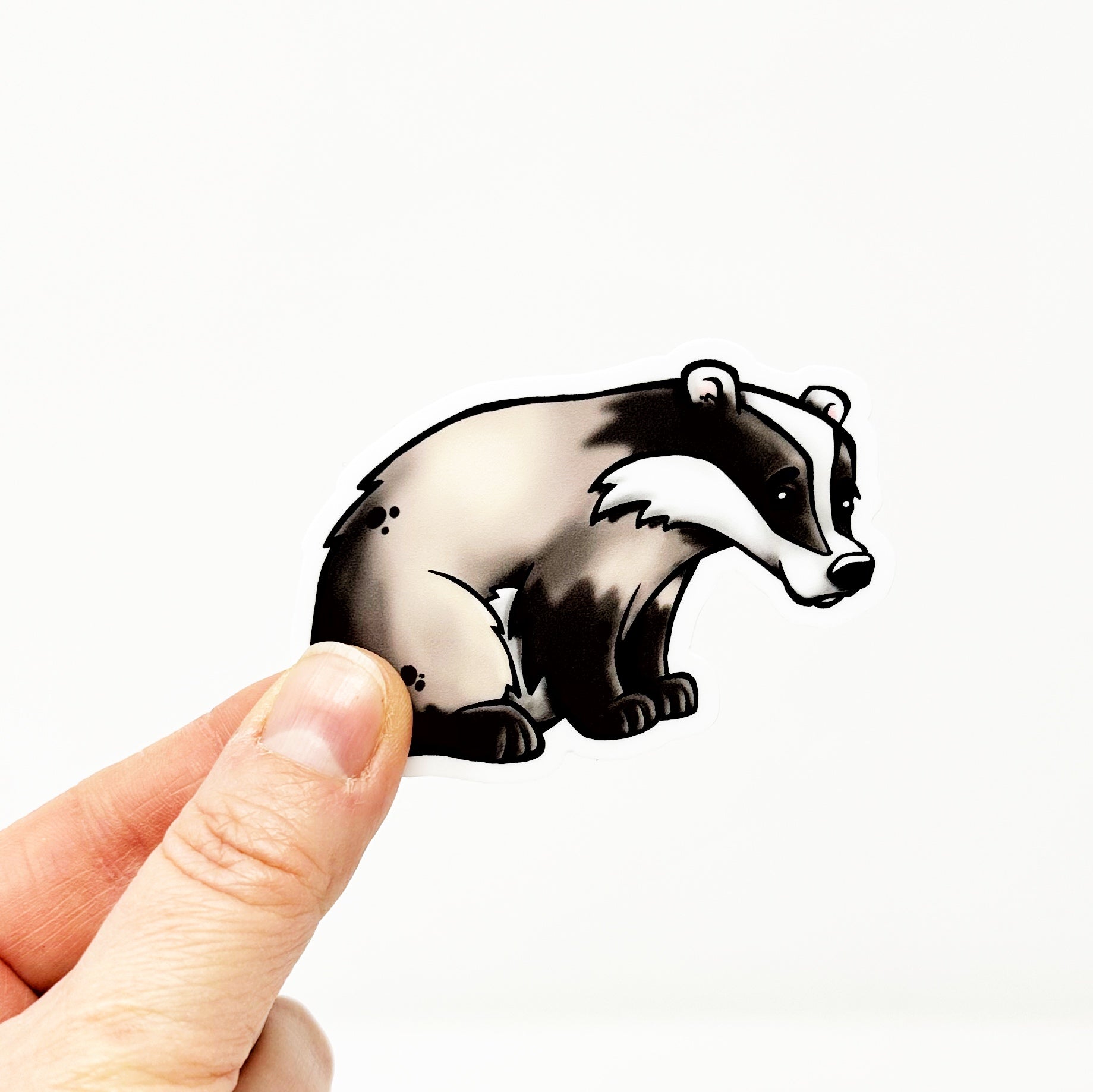 Adorable illustrated badger die cut vinyl sticker.