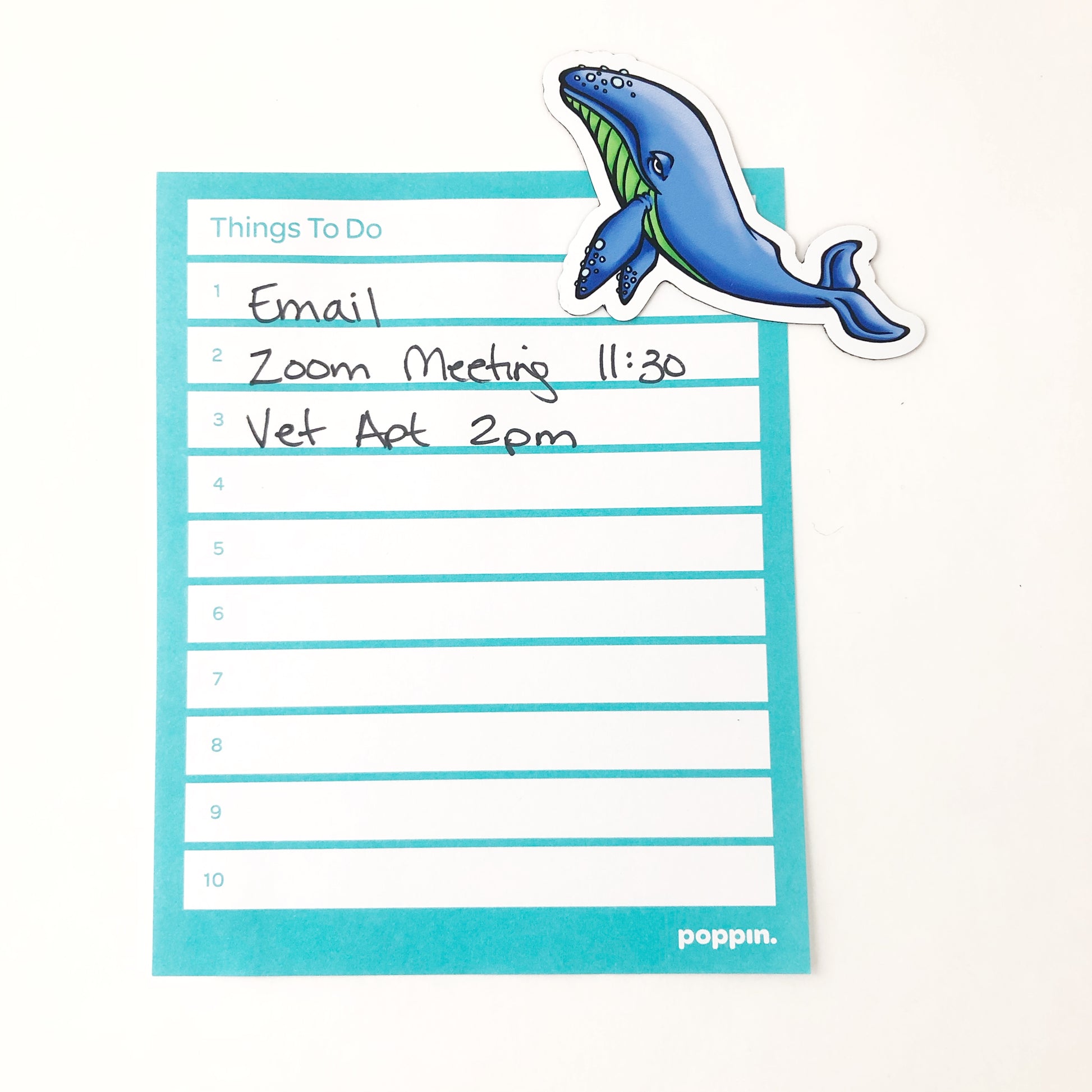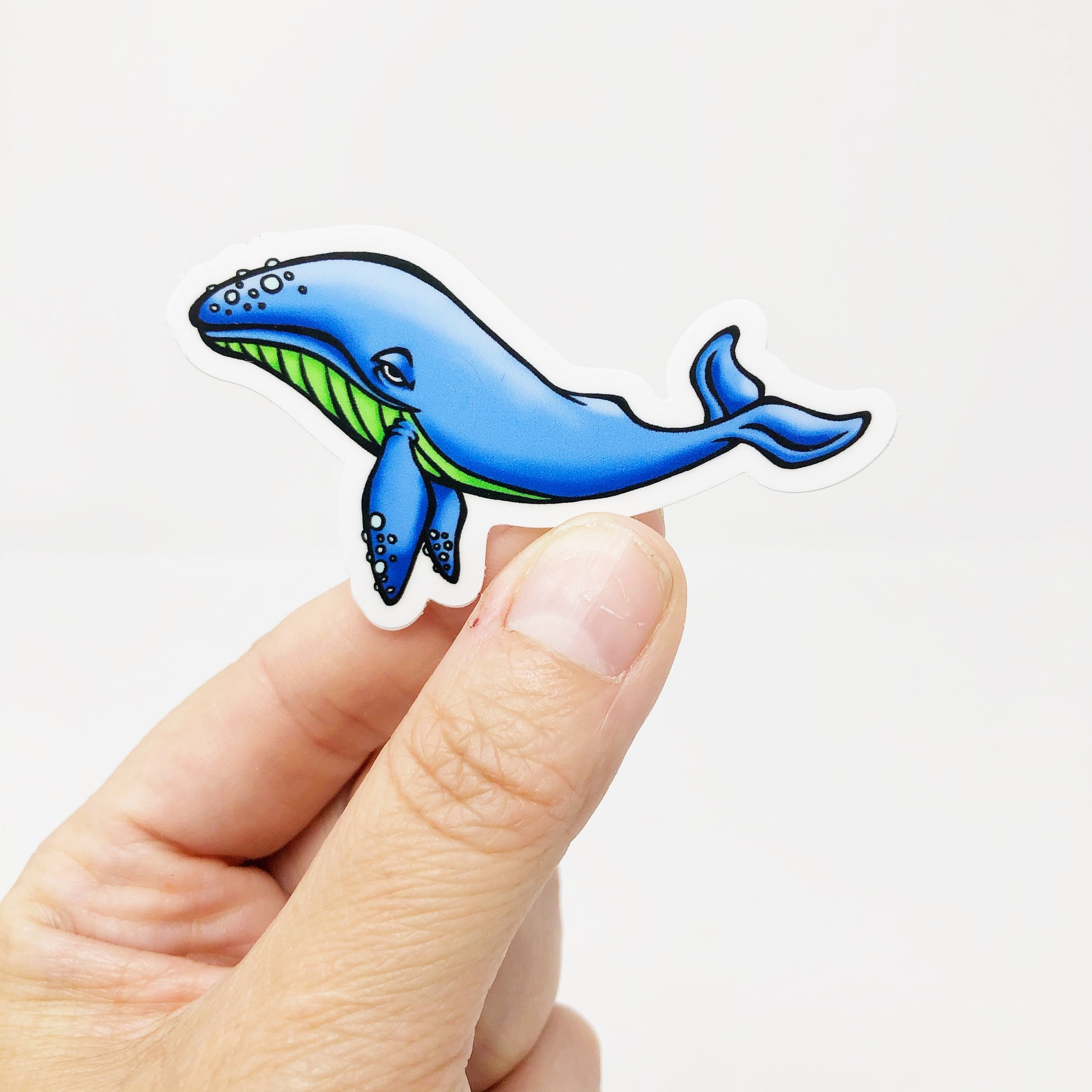 Adorable illustrated blue whale die cut magnet.