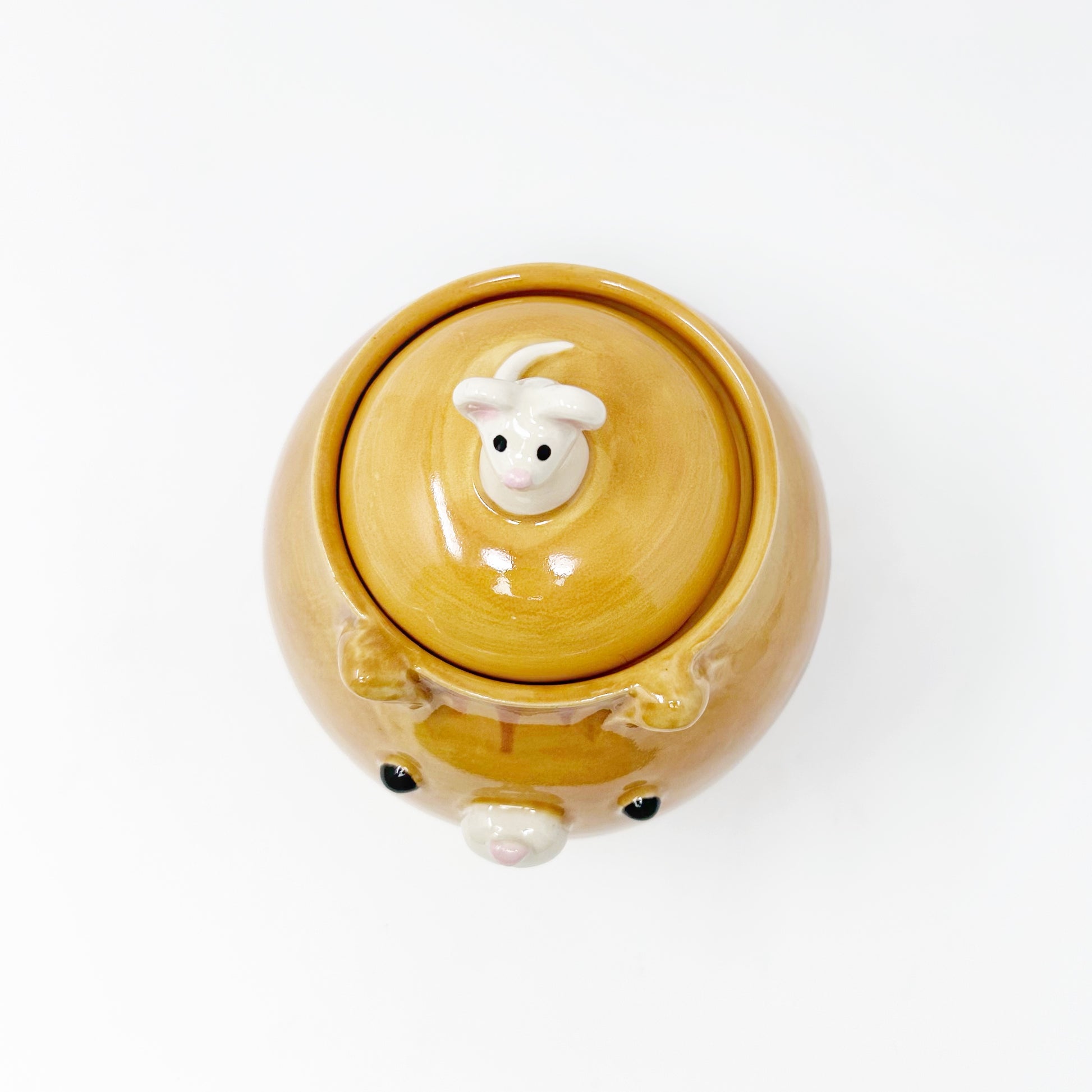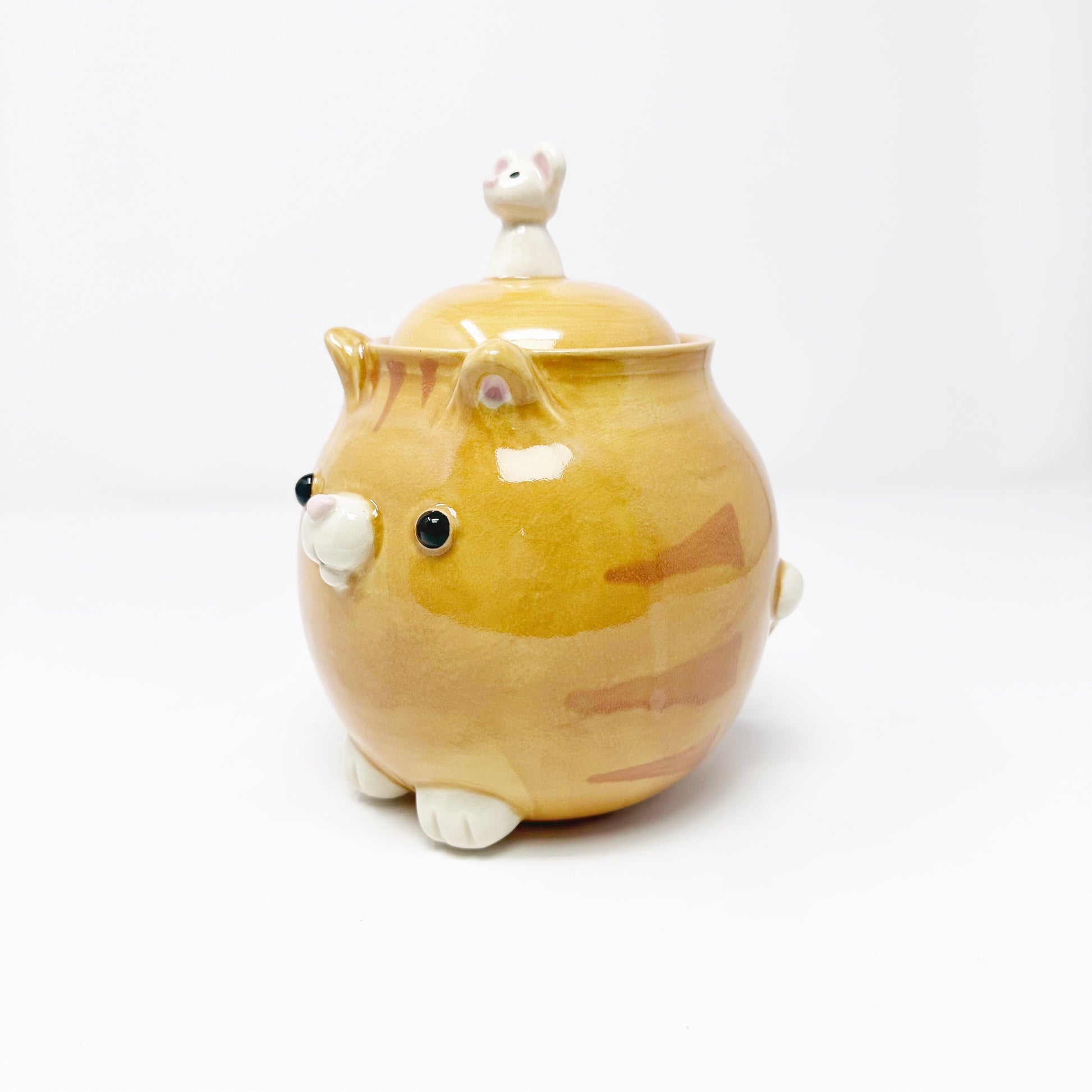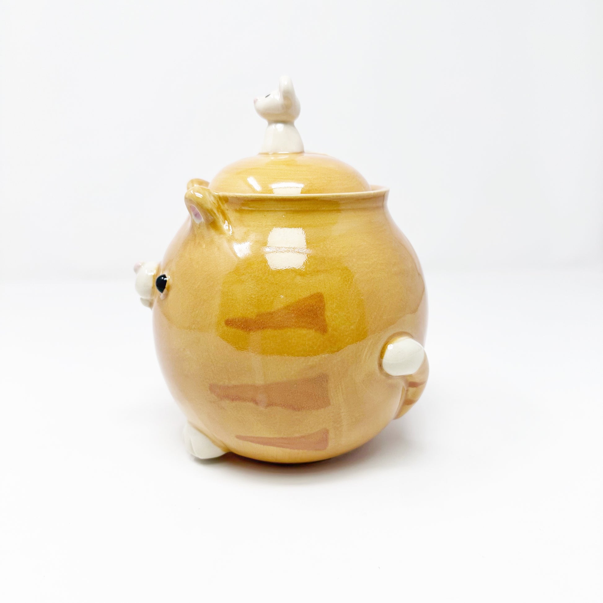 This item is lovingly created on the wheel and then the features are built on by hand. Since all of our creations are built one at a time, no two are exactly the same. Our products are also hand painted adding to the unique design on every creation. You may be able to see our hands at work in the brush strokes of the glaze. You may also notice some texture in spots. This is part of our handmade quality and the uniqueness to every piece.