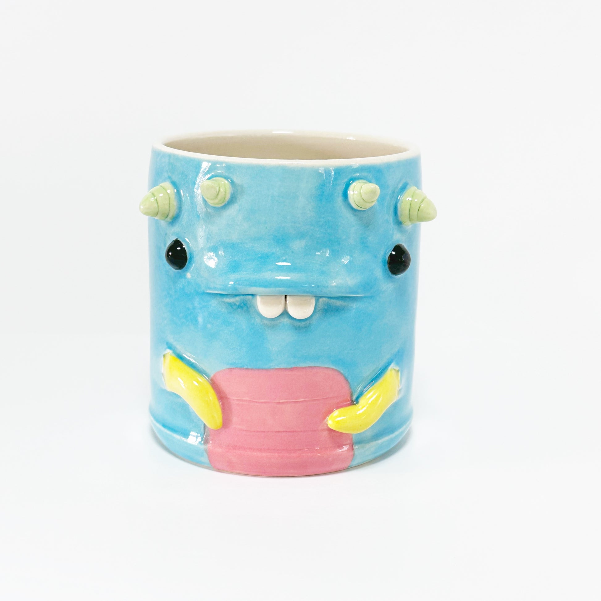 This mug is lovingly created on the wheel and then the features are built on by hand. Since all of our creations are built one at a time, no two are exactly the same. Our products are also hand painted adding to the unique design on every creation. You may be able to see our hands at work in the brush strokes of the glaze. You may also notice some texture in spots. This is part of our handmade quality and the uniqueness to every piece.
