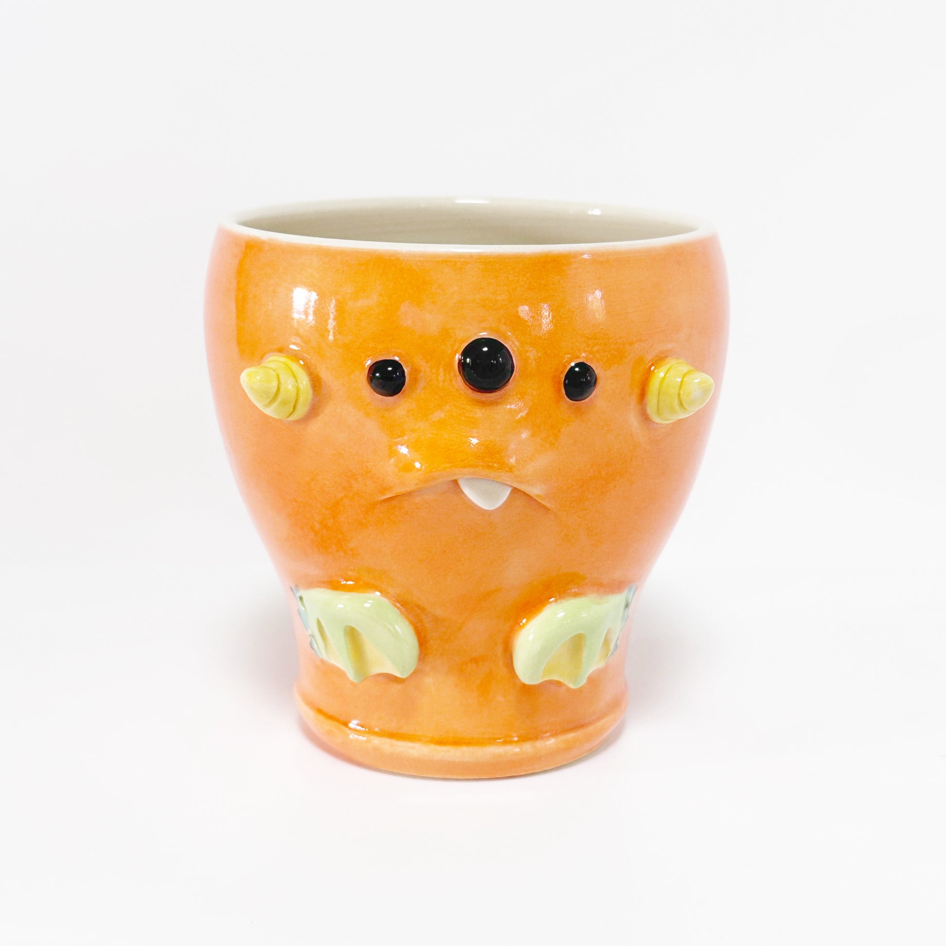 This mug is lovingly created on the wheel and then the features are built on by hand. Since all of our creations are built one at a time, no two are exactly the same. Our products are also hand painted adding to the unique design on every creation. You may be able to see our hands at work in the brush strokes of the glaze. You may also notice some texture in spots. This is part of our handmade quality and the uniqueness to every piece.