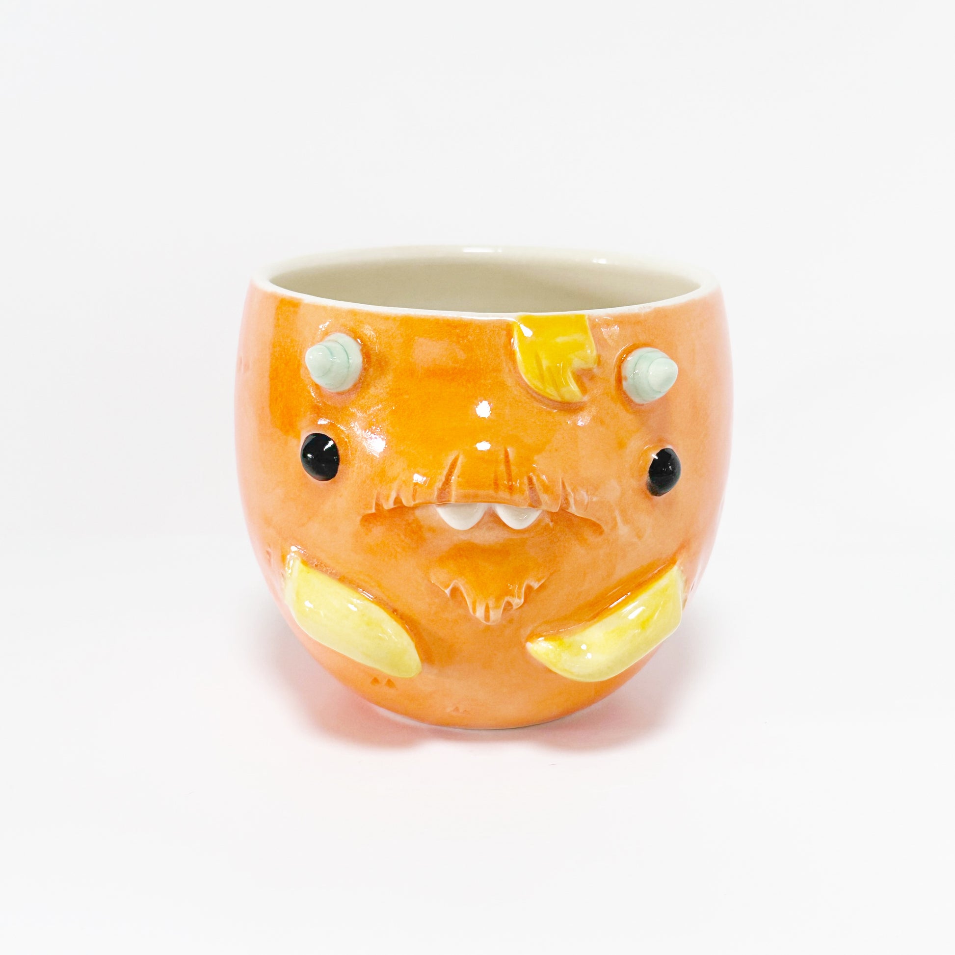 This mug is lovingly created on the wheel and then the features are built on by hand. Since all of our creations are built one at a time, no two are exactly the same. Our products are also hand painted adding to the unique design on every creation. You may be able to see our hands at work in the brush strokes of the glaze. You may also notice some texture in spots. This is part of our handmade quality and the uniqueness to every piece.