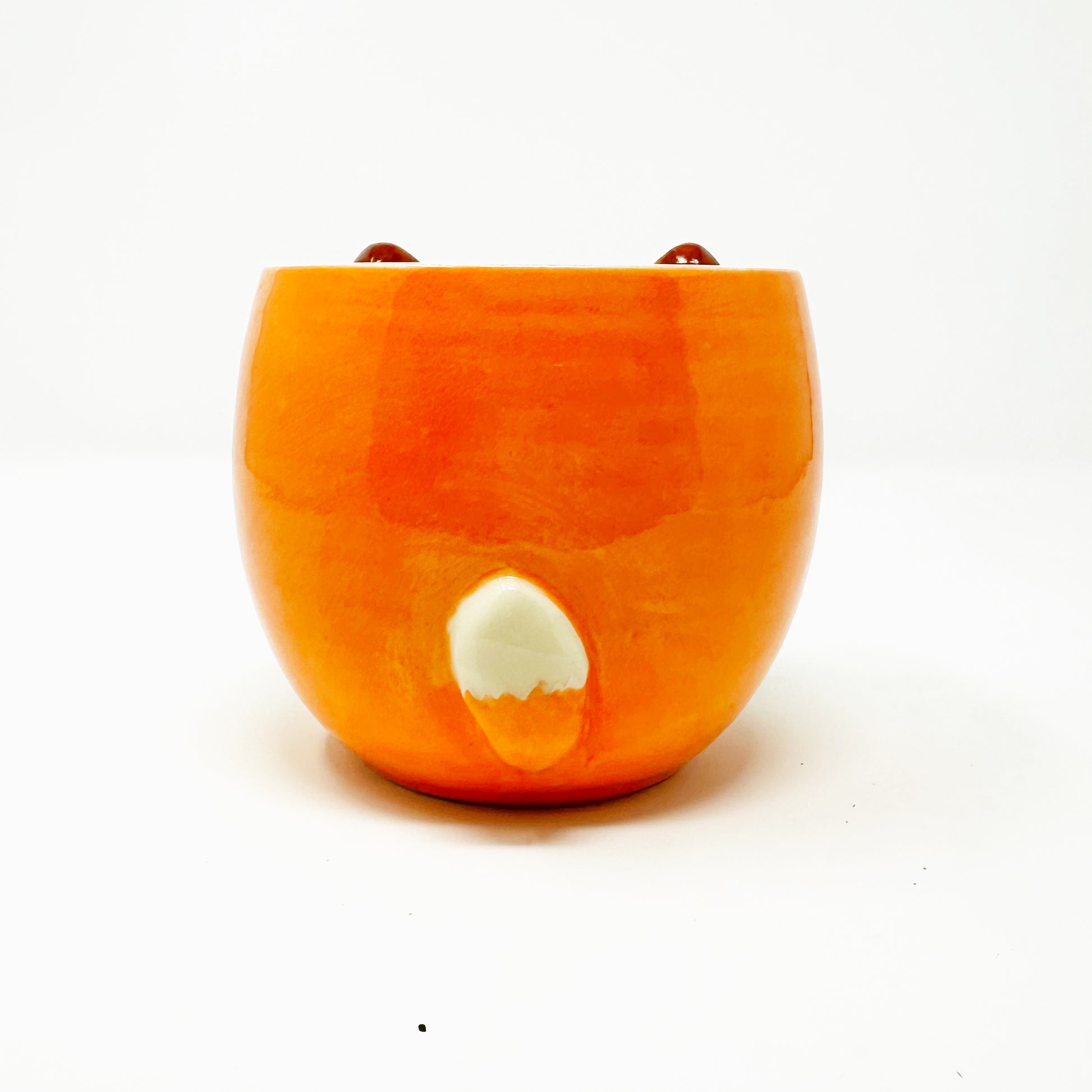 Our bowls are lovingly created on the wheel and then the features are built on by hand. Since all of our items are built one at a time, no two are exactly the same. Our creations are also hand painted adding to the unique design on every piece. You may be able to see our hands at work in the brush strokes of the glaze.