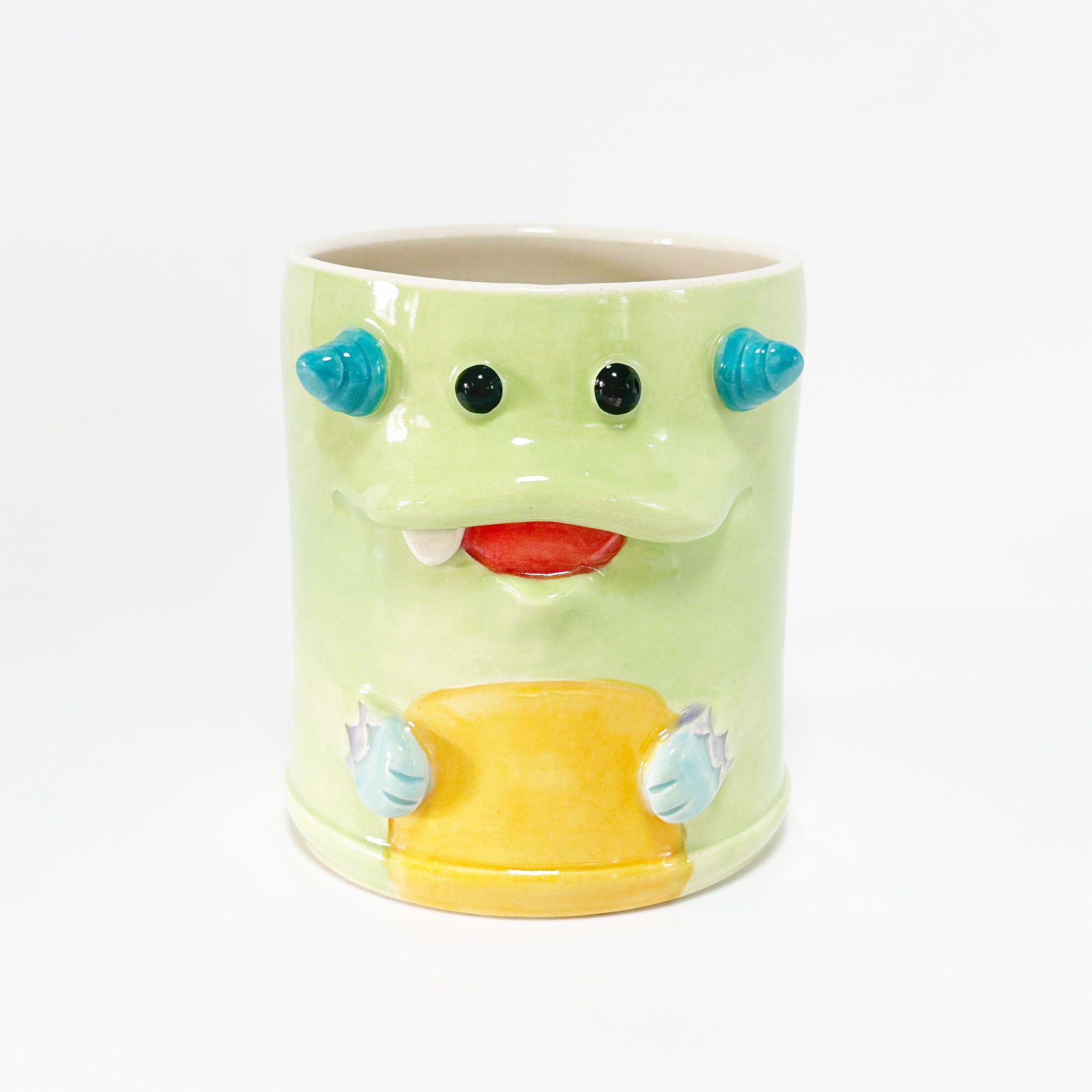 This mug is lovingly created on the wheel and then the features are built on by hand. Since all of our creations are built one at a time, no two are exactly the same. Our products are also hand painted adding to the unique design on every creation. You may be able to see our hands at work in the brush strokes of the glaze. You may also notice some texture in spots. This is part of our handmade quality and the uniqueness to every piece.