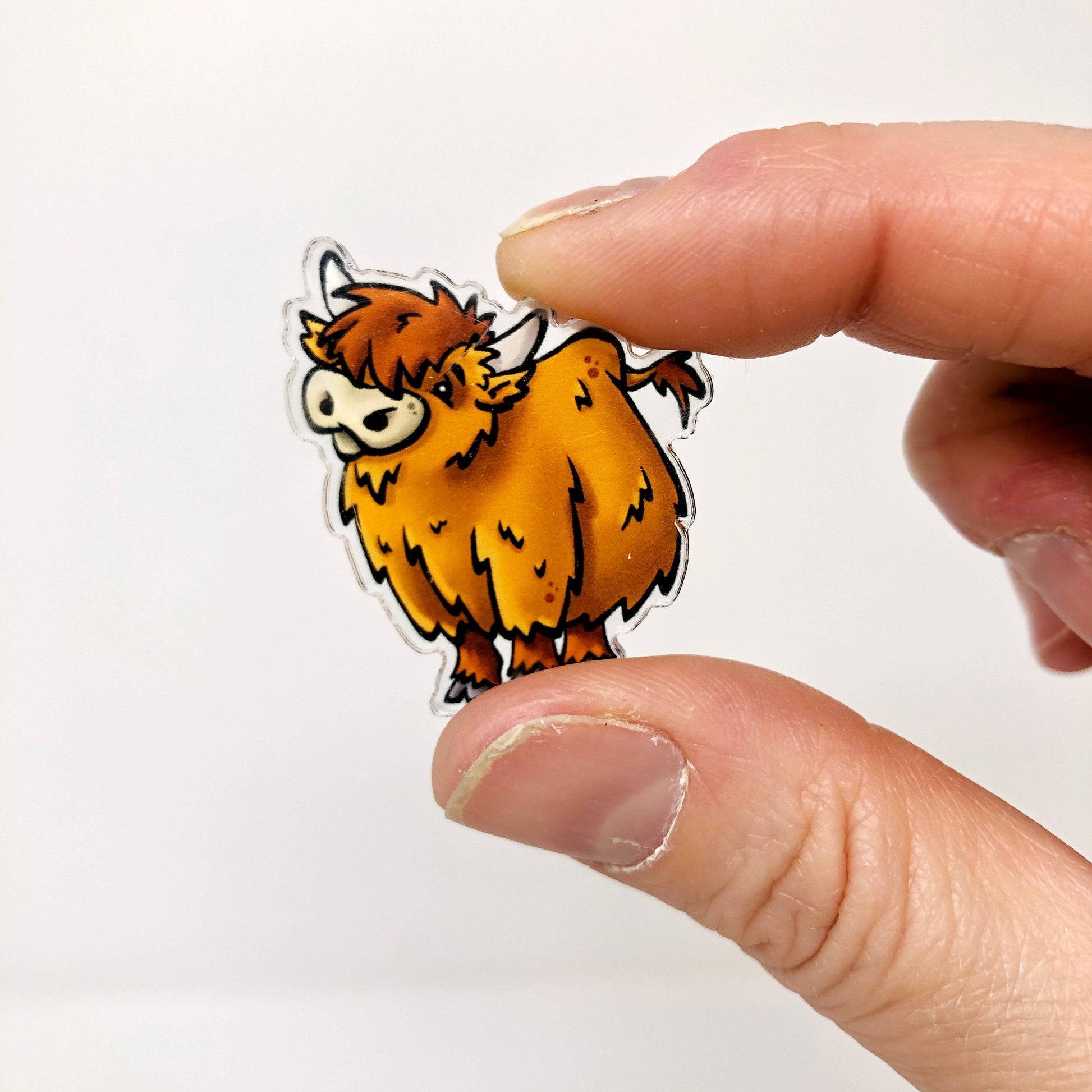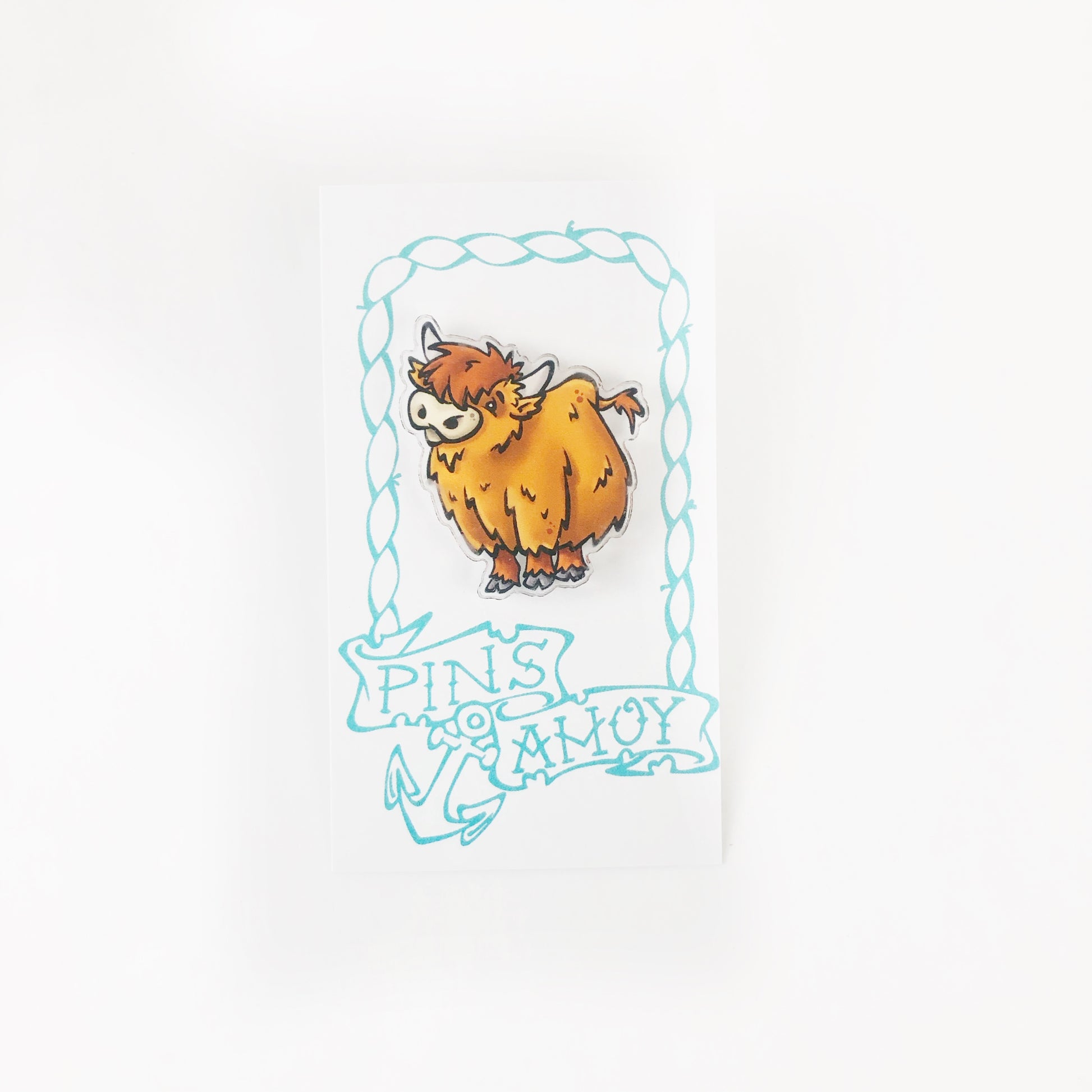 This highland cow pin will add flair to your jackets, sweaters, bags and more!