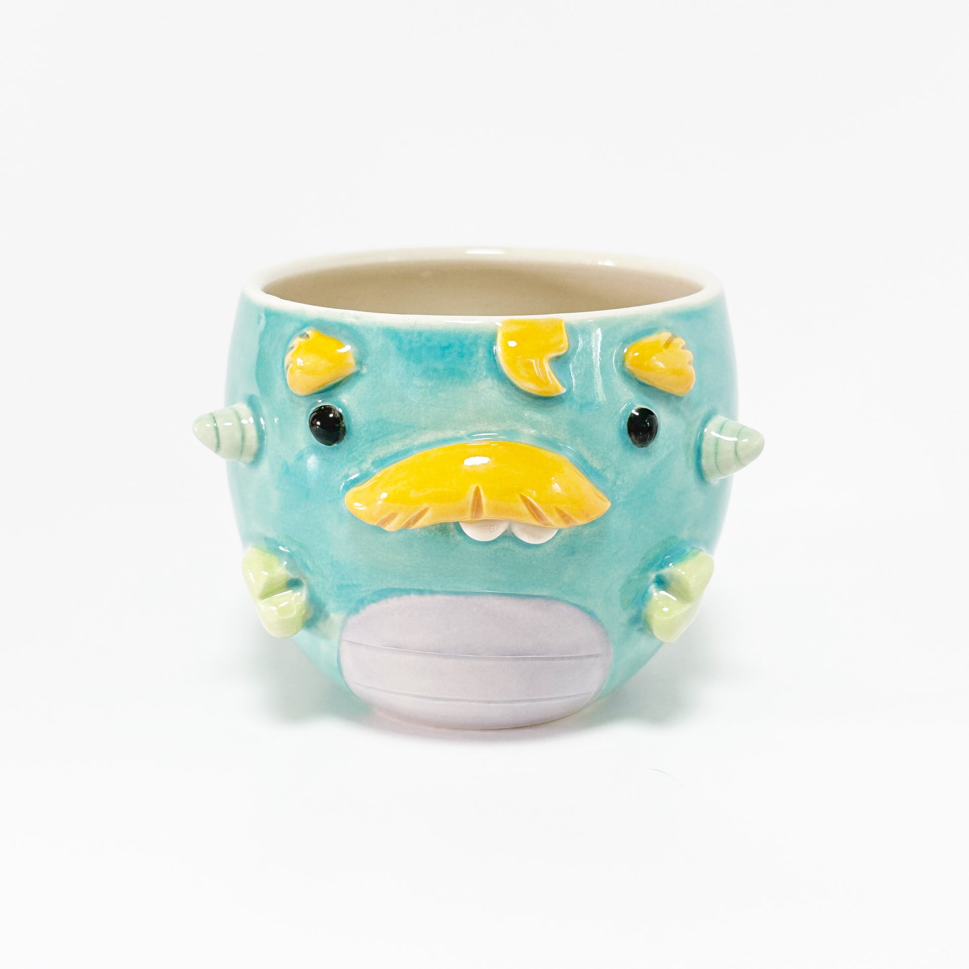 This mug is lovingly created on the wheel and then the features are built on by hand. Since all of our creations are built one at a time, no two are exactly the same. Our products are also hand painted adding to the unique design on every creation. You may be able to see our hands at work in the brush strokes of the glaze. You may also notice some texture in spots. This is part of our handmade quality and the uniqueness to every piece.