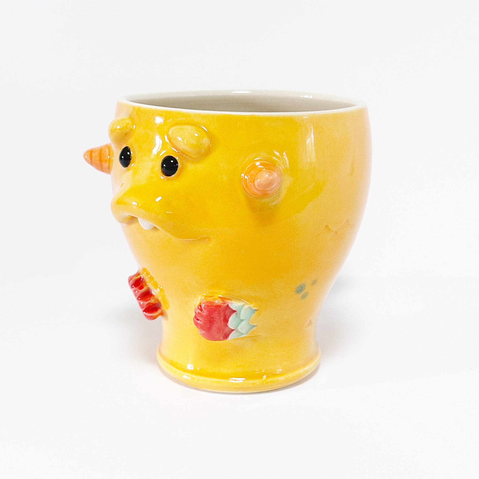This mug is lovingly created on the wheel and then the features are built on by hand. Since all of our creations are built one at a time, no two are exactly the same. Our products are also hand painted adding to the unique design on every creation. You may be able to see our hands at work in the brush strokes of the glaze. You may also notice some texture in spots. This is part of our handmade quality and the uniqueness to every piece.