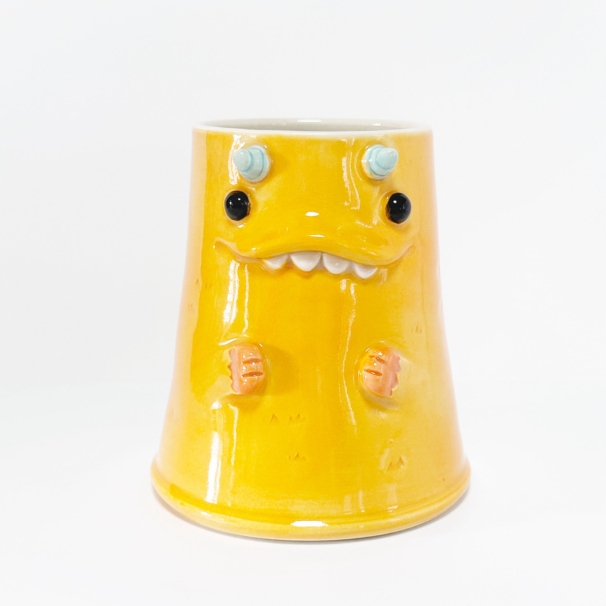 This mug is lovingly created on the wheel and then the features are built on by hand. Since all of our creations are built one at a time, no two are exactly the same. Our products are also hand painted adding to the unique design on every creation. You may be able to see our hands at work in the brush strokes of the glaze. You may also notice some texture in spots. This is part of our handmade quality and the uniqueness to every piece.