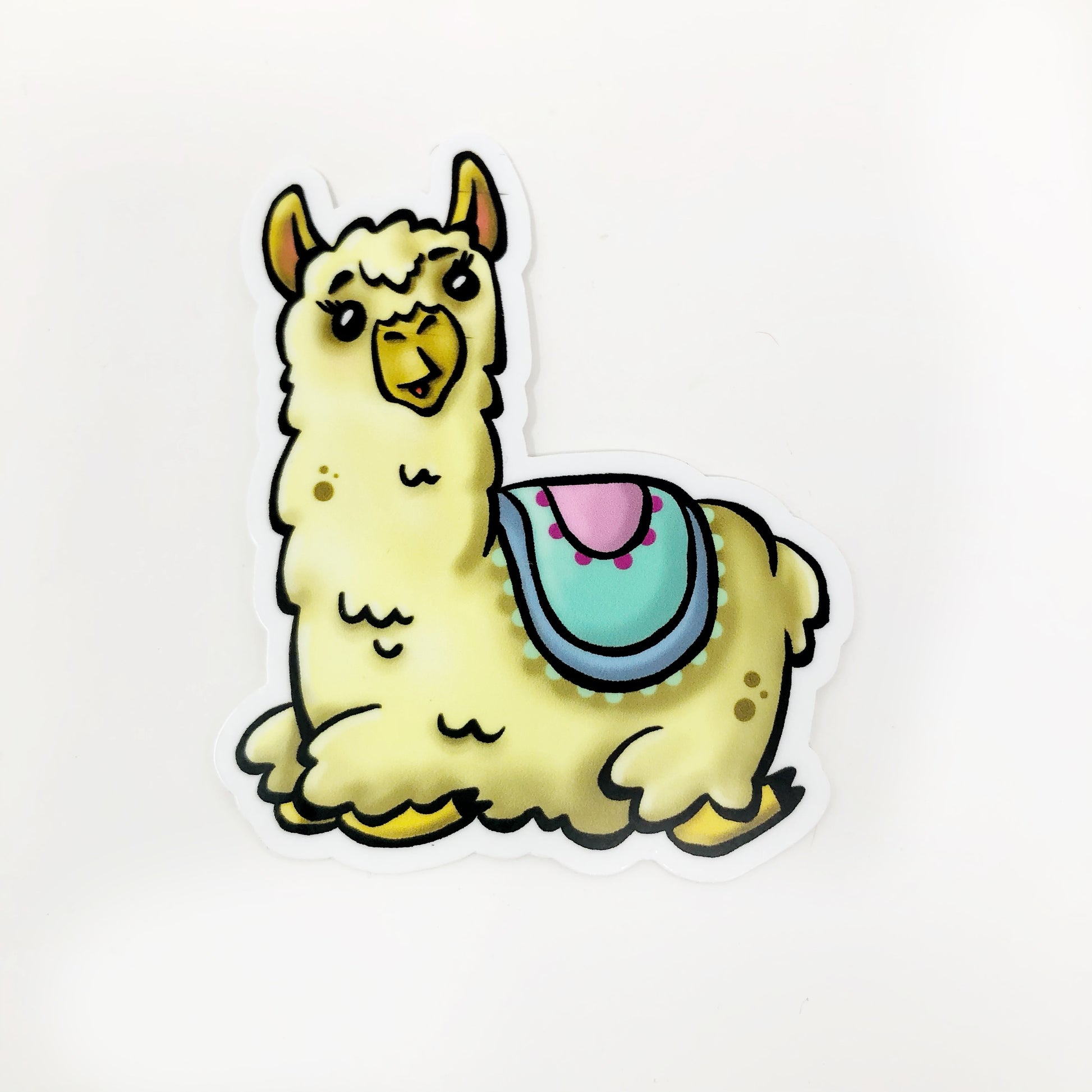 Adorable illustrated llama die cut vinyl sticker.