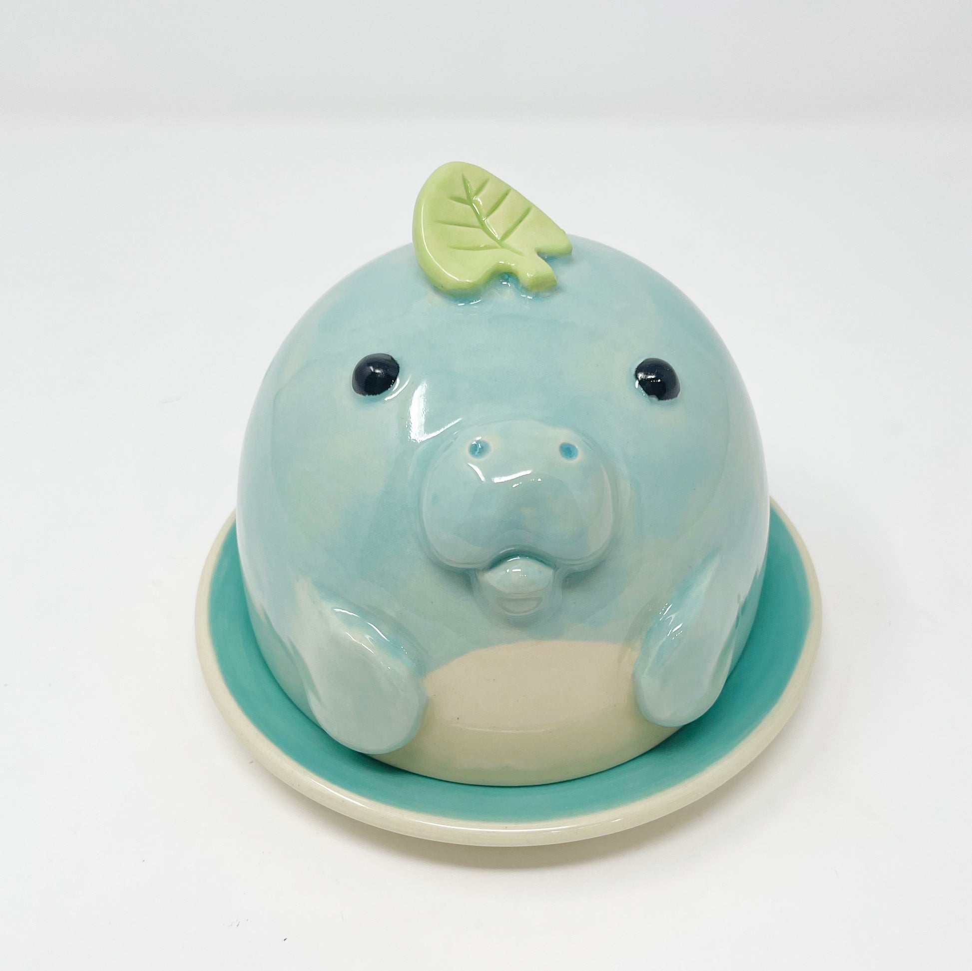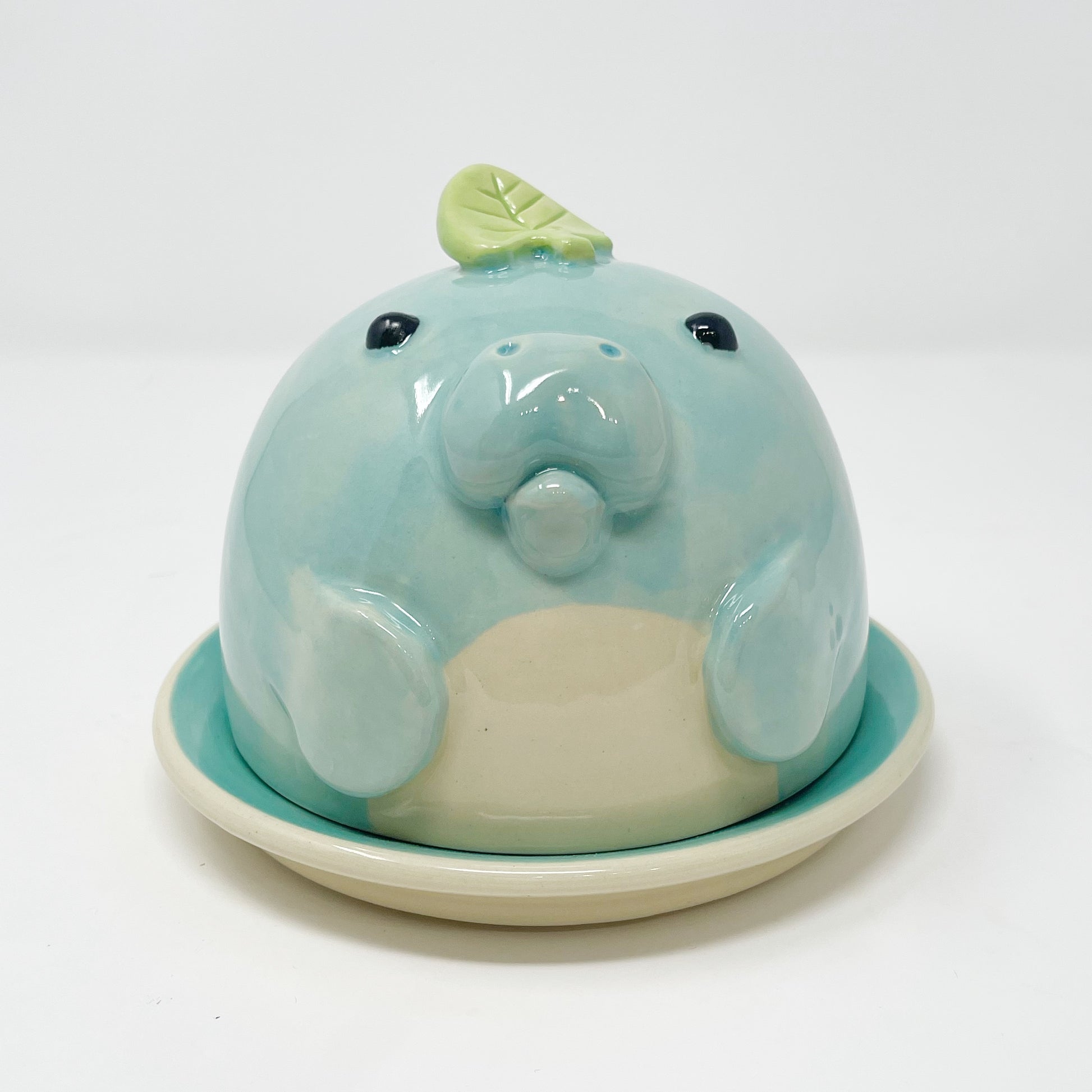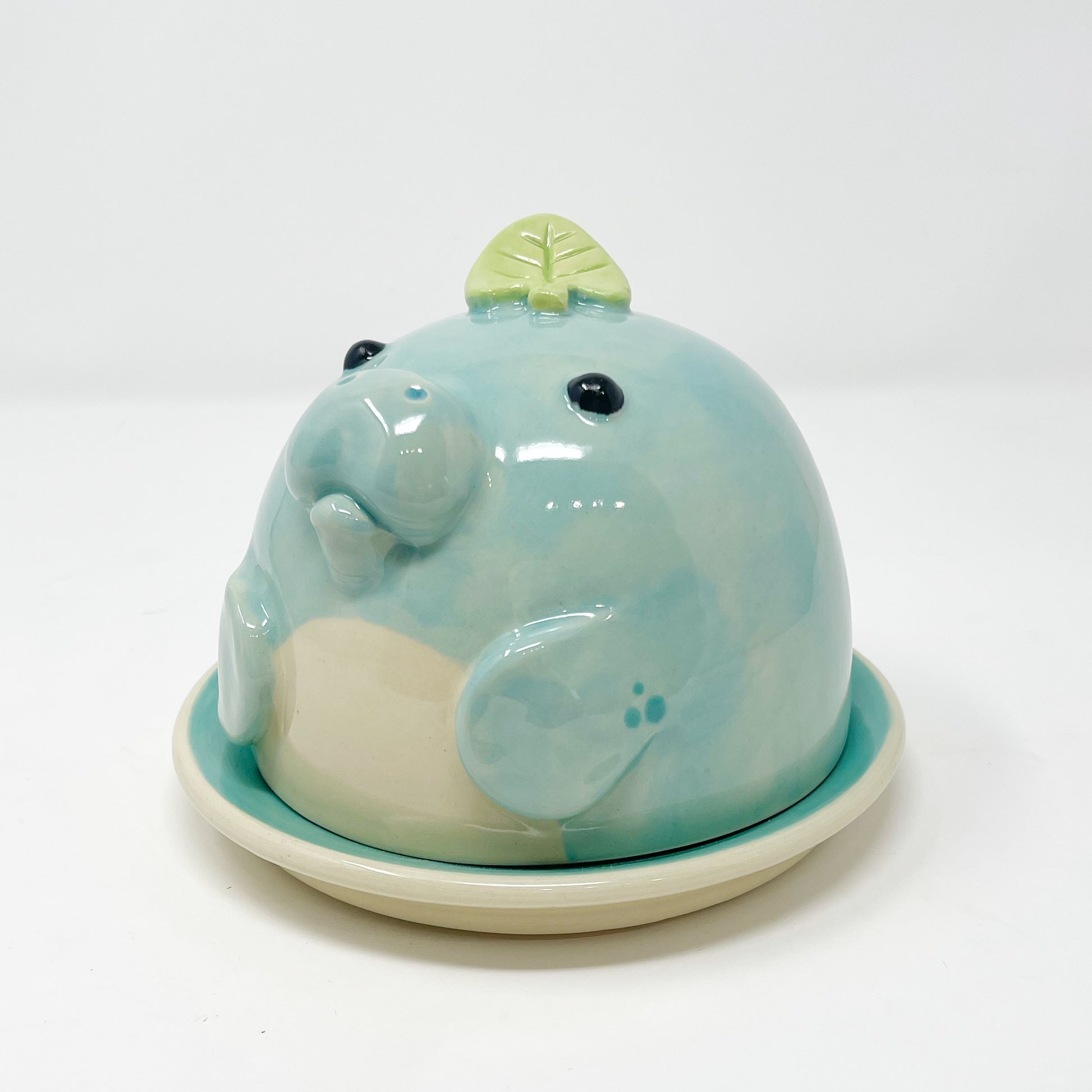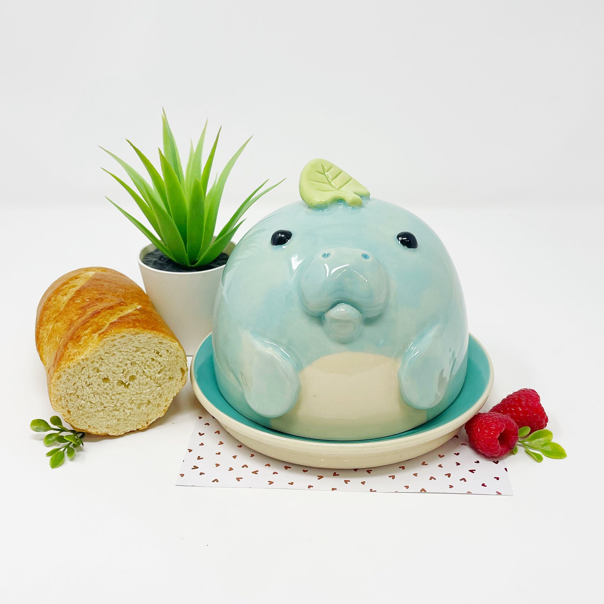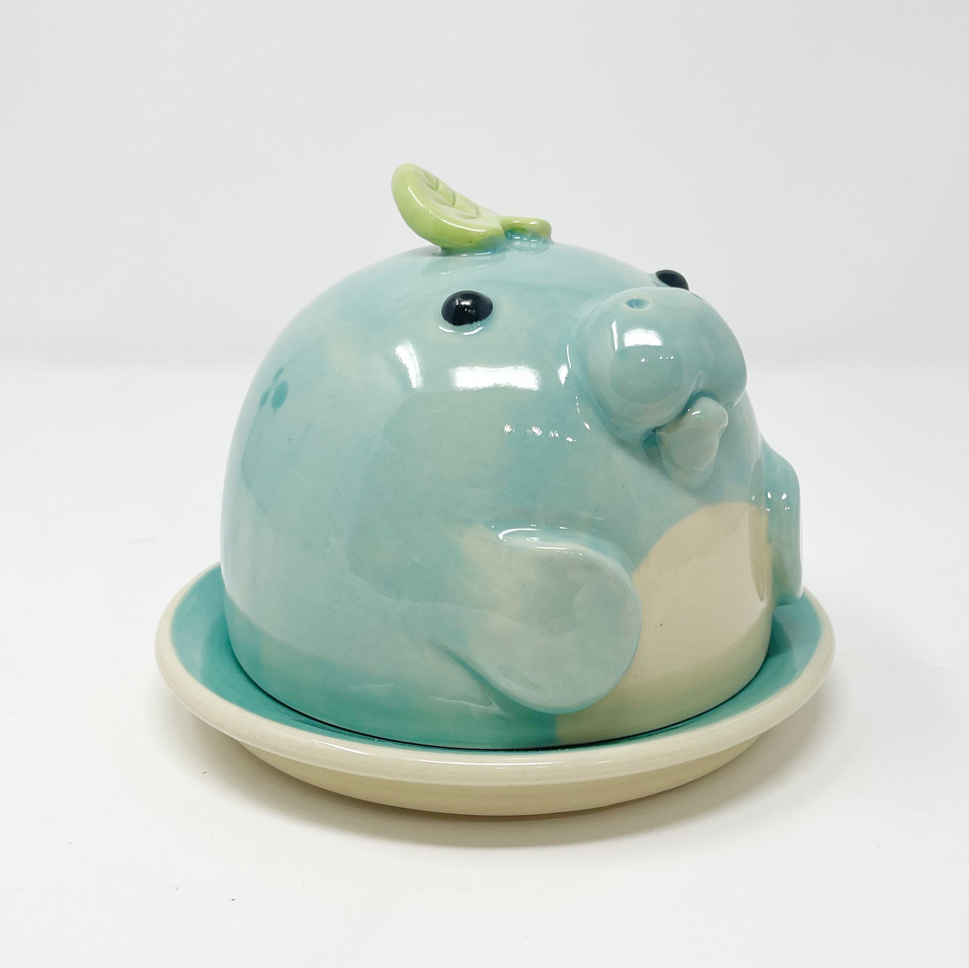 This butter dish is lovingly created on the wheel and the details are built on by hand. The plate is made with a raised lip to keep your pad of butter in place and protect against the moving lid.