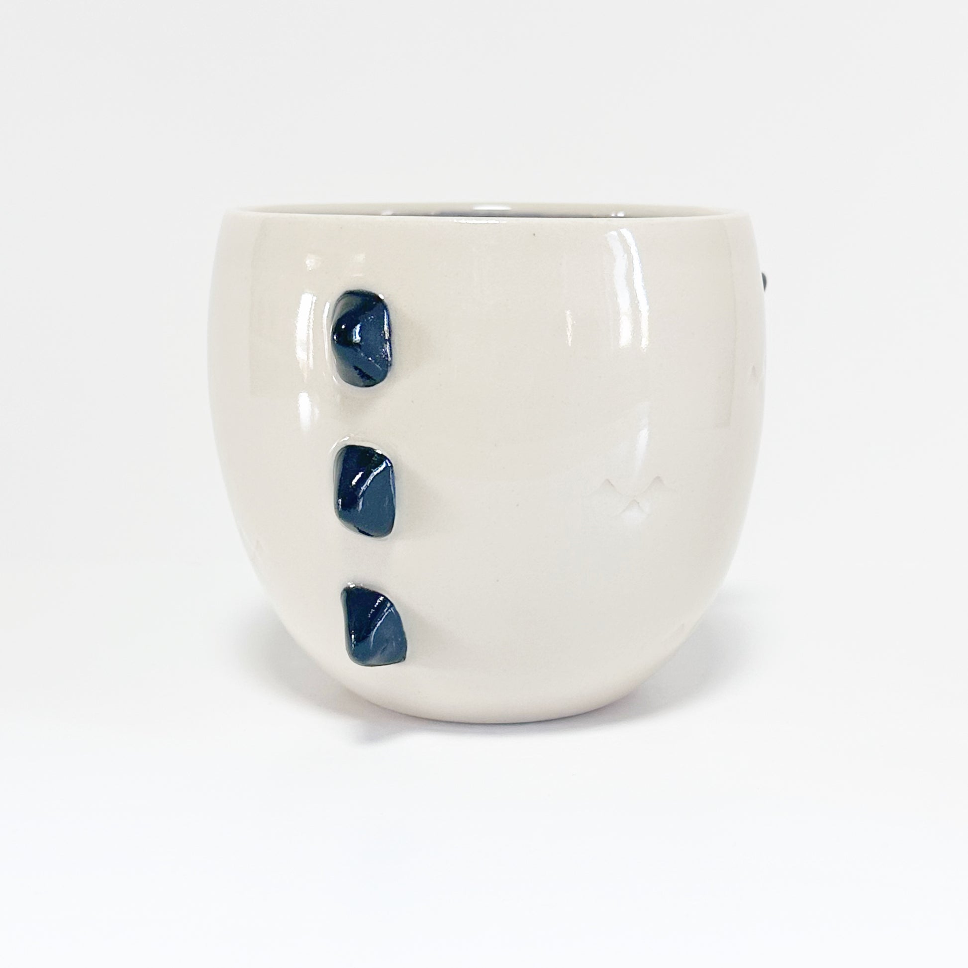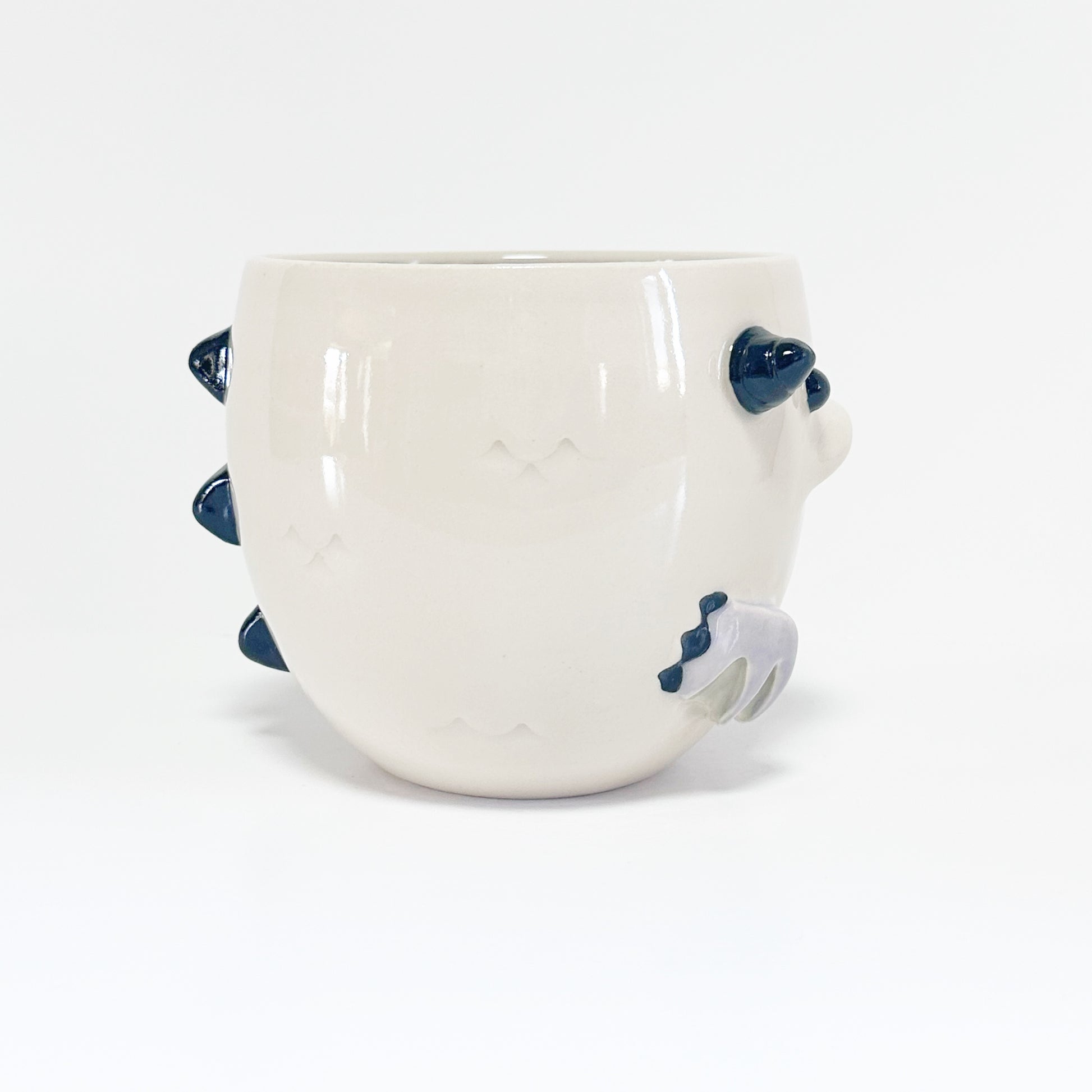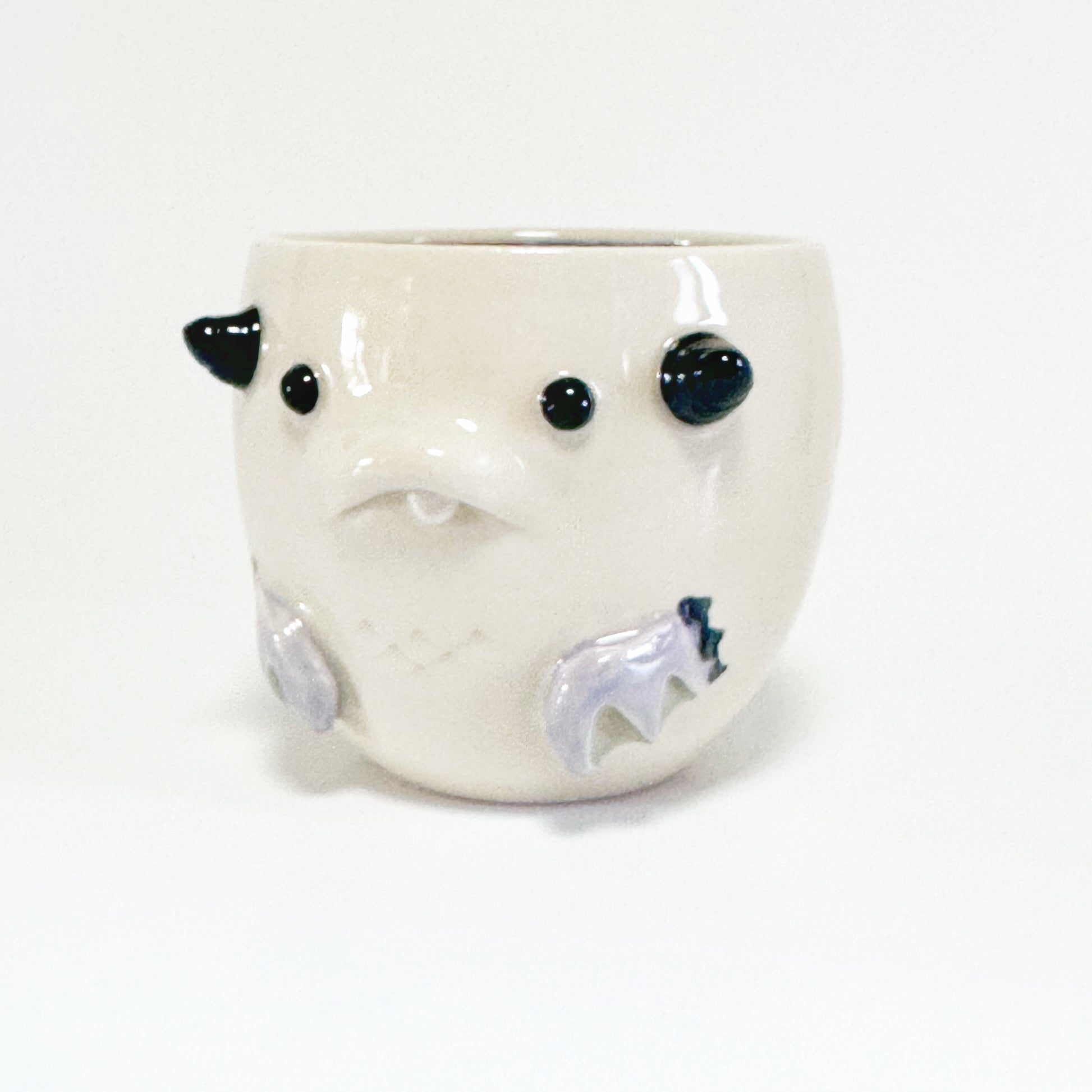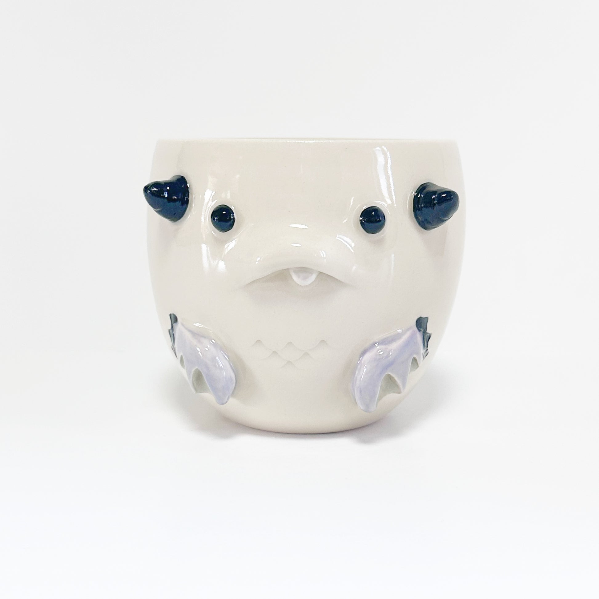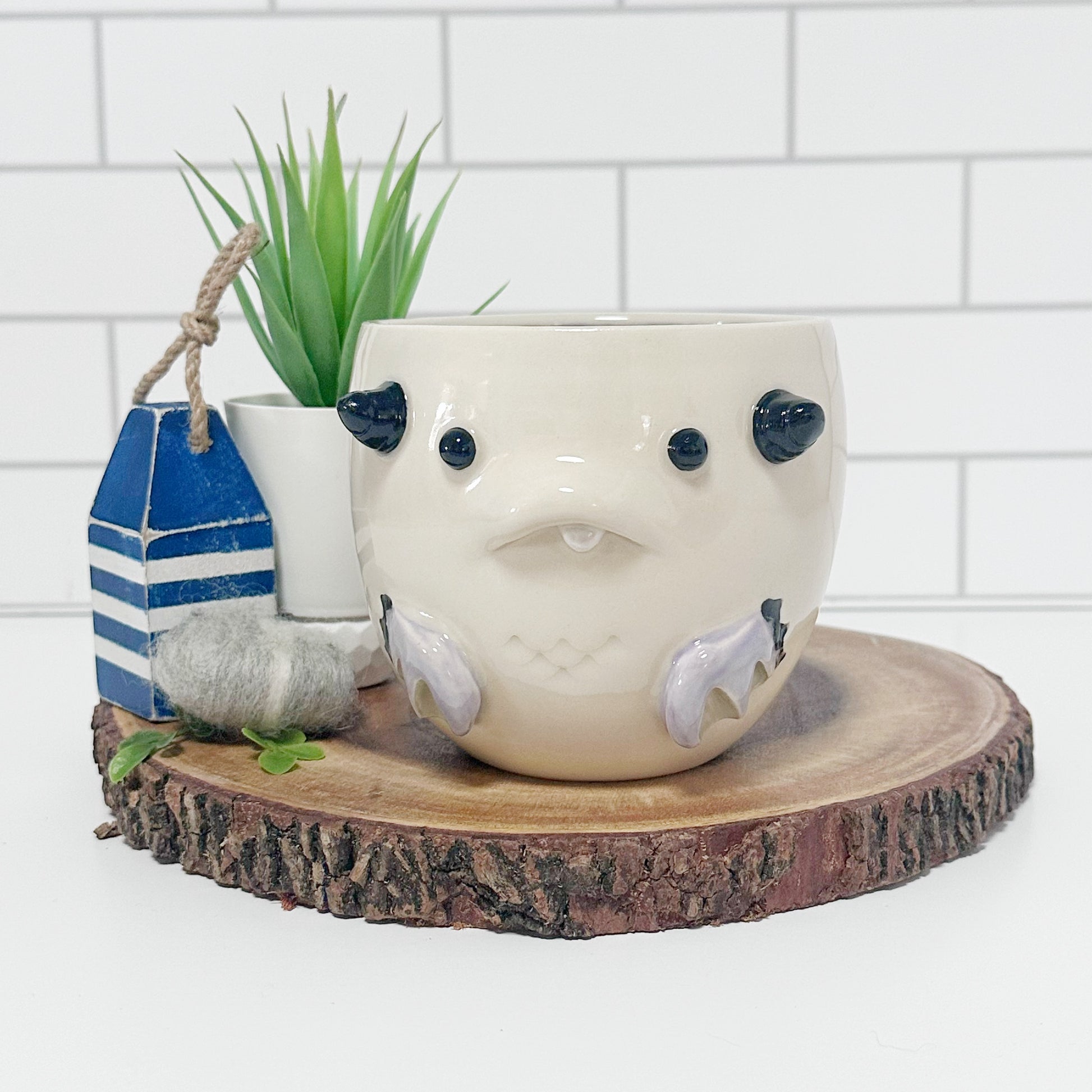 This mug is lovingly created on the wheel and then the features are built on by hand. Since all of our creations are built one at a time, no two are exactly the same. Our products are also hand painted adding to the unique design on every creation. You may be able to see our hands at work in the brush strokes of the glaze. You may also notice some texture in spots. This is part of our handmade quality and the uniqueness to every piece.