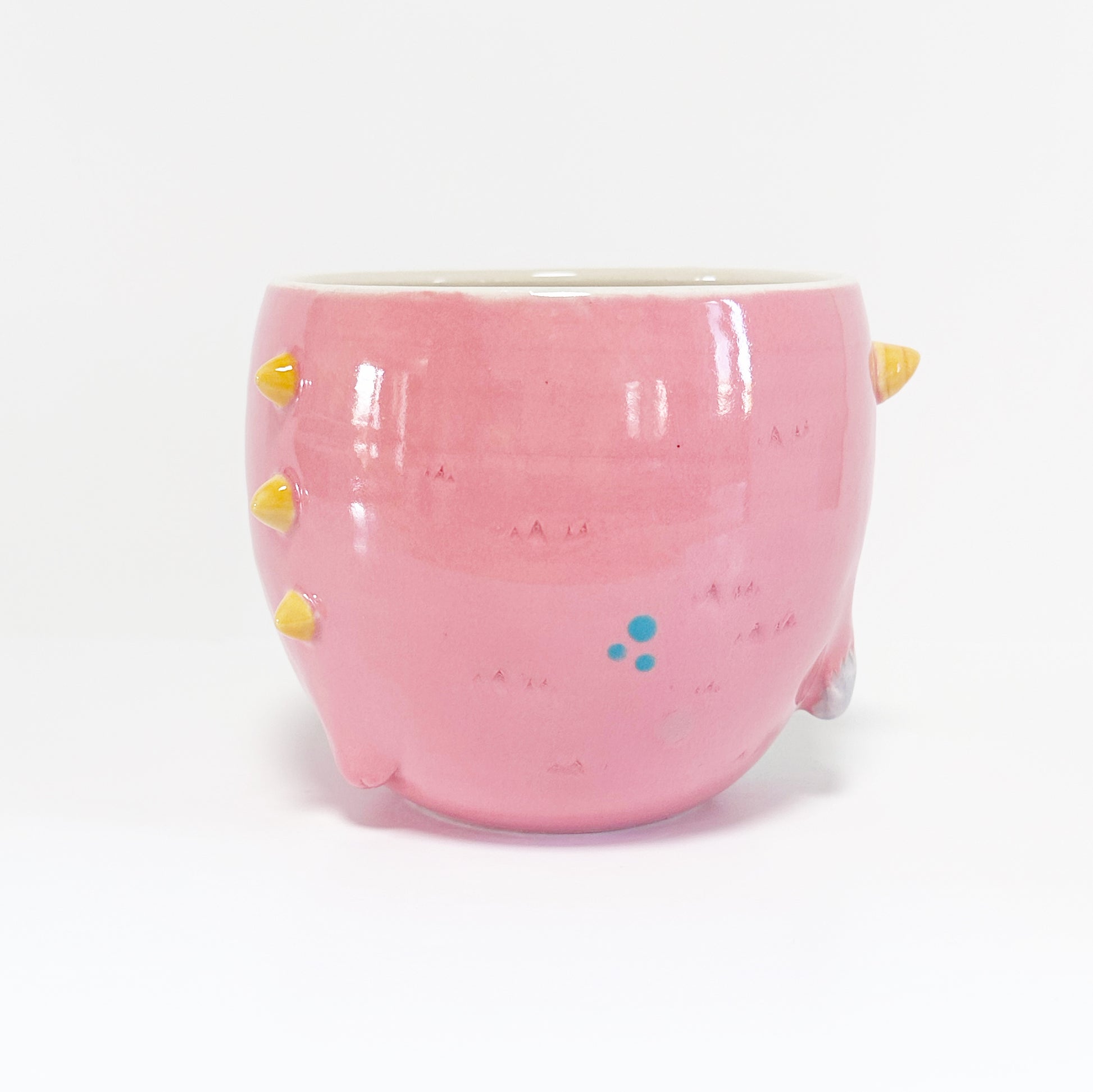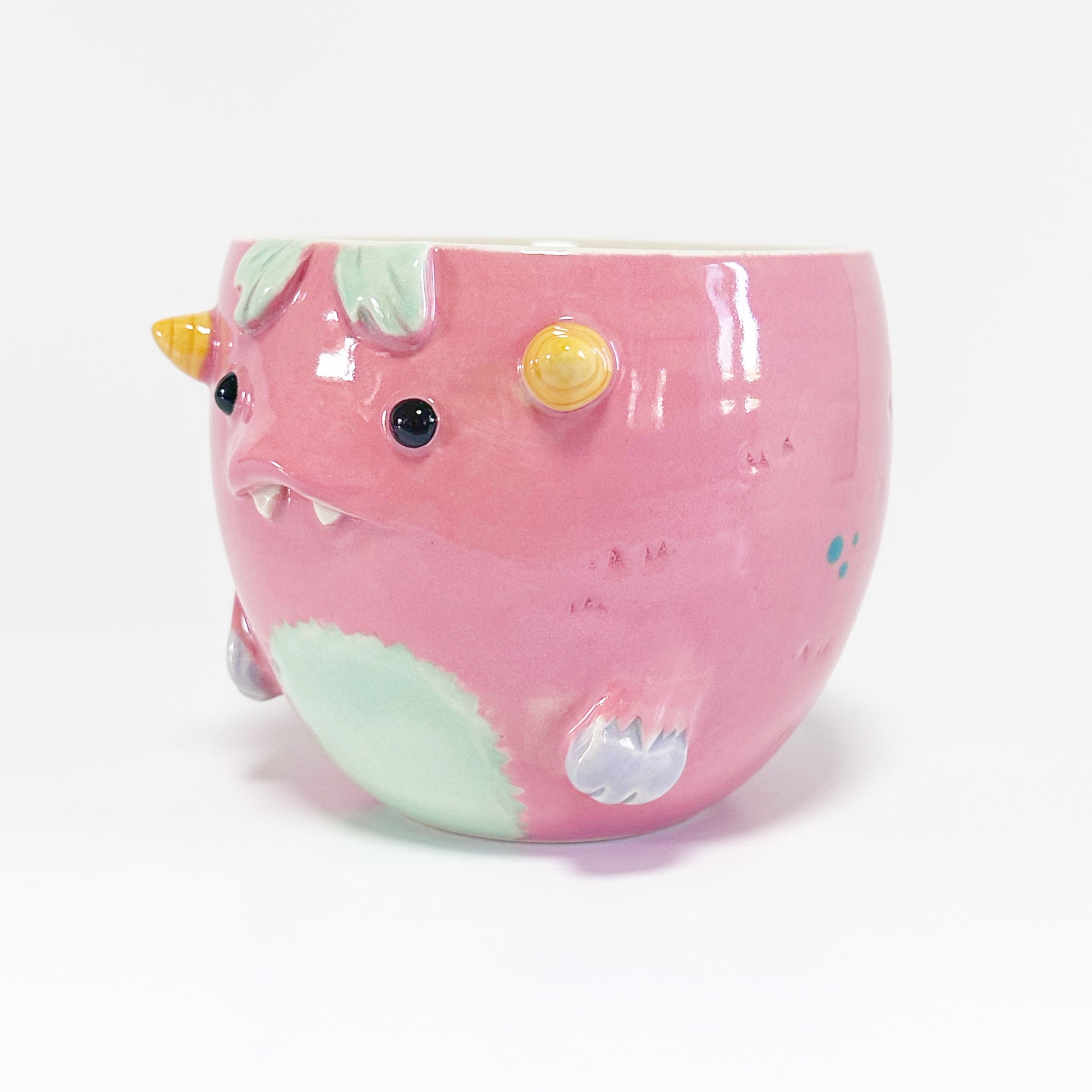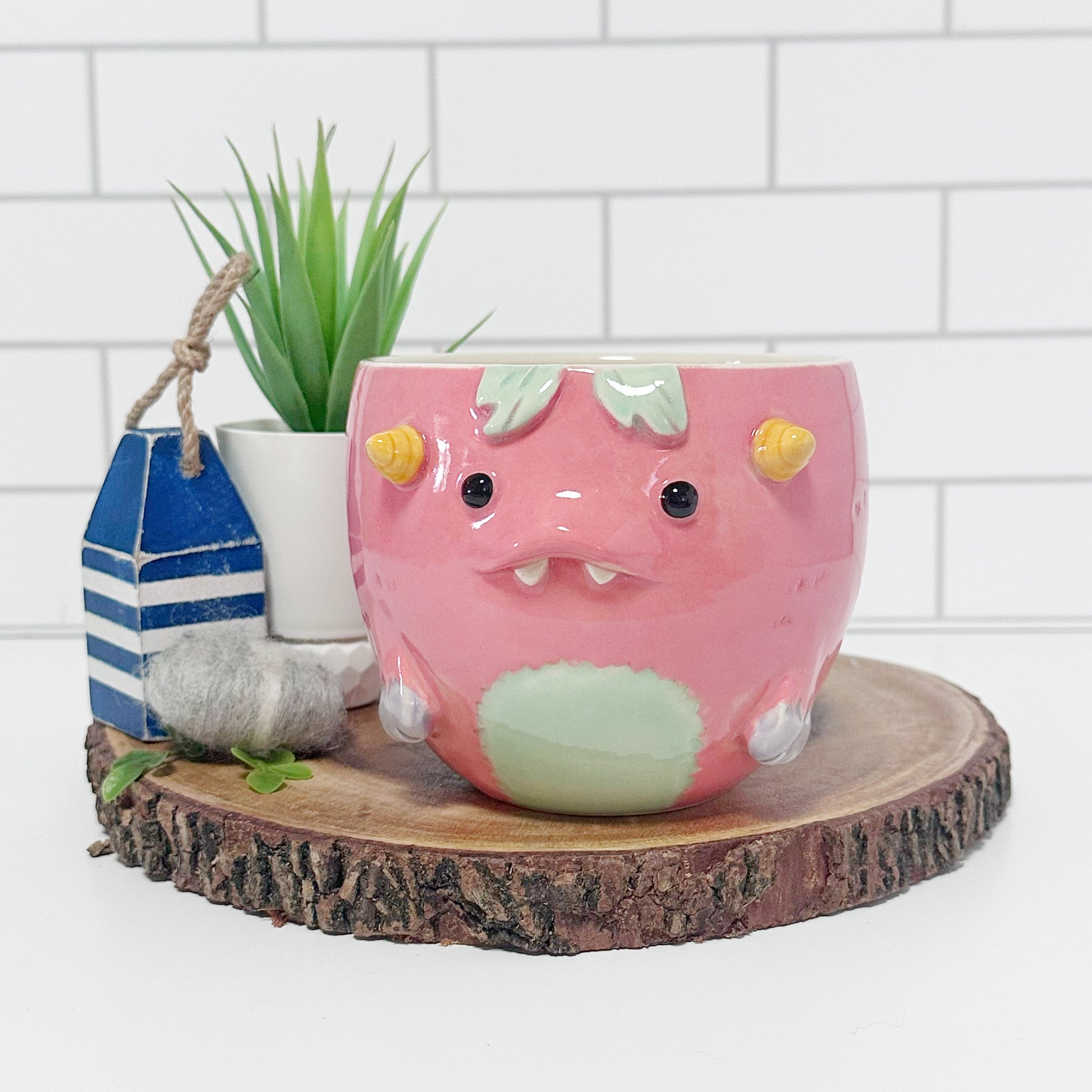 This mug is lovingly created on the wheel and then the features are built on by hand. Since all of our creations are built one at a time, no two are exactly the same. Our products are also hand painted adding to the unique design on every creation. You may be able to see our hands at work in the brush strokes of the glaze. You may also notice some texture in spots. This is part of our handmade quality and the uniqueness to every piece.