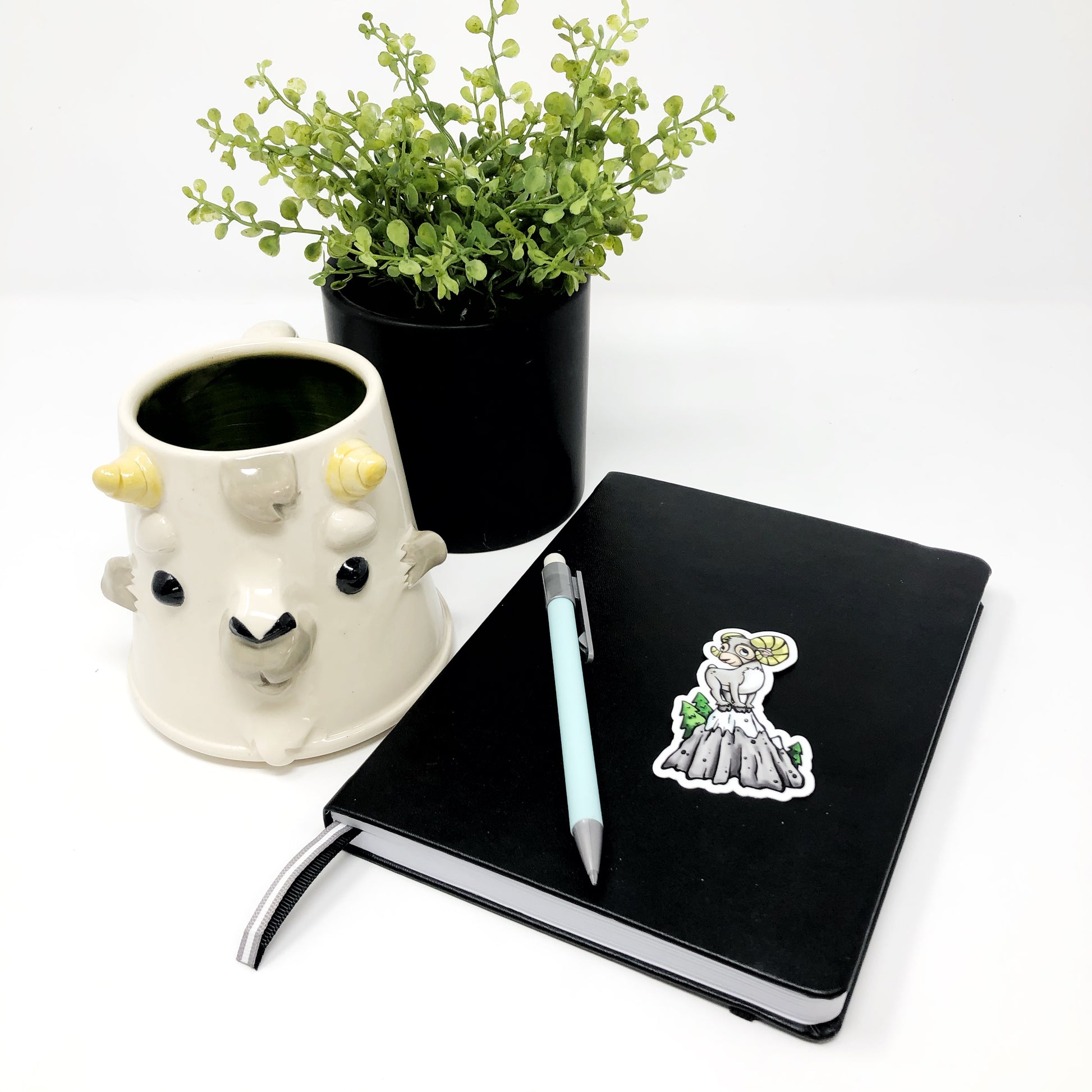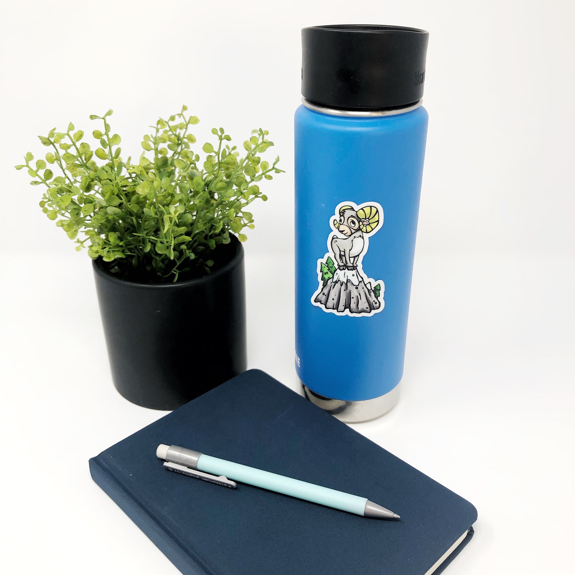 Adorable illustrated mountain goat die cut vinyl sticker.