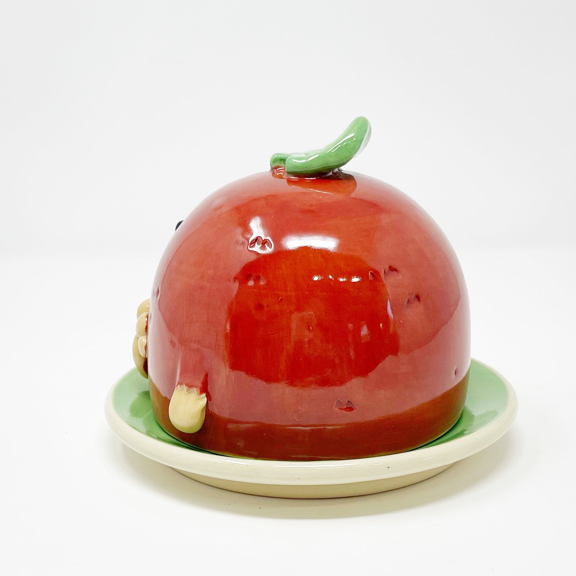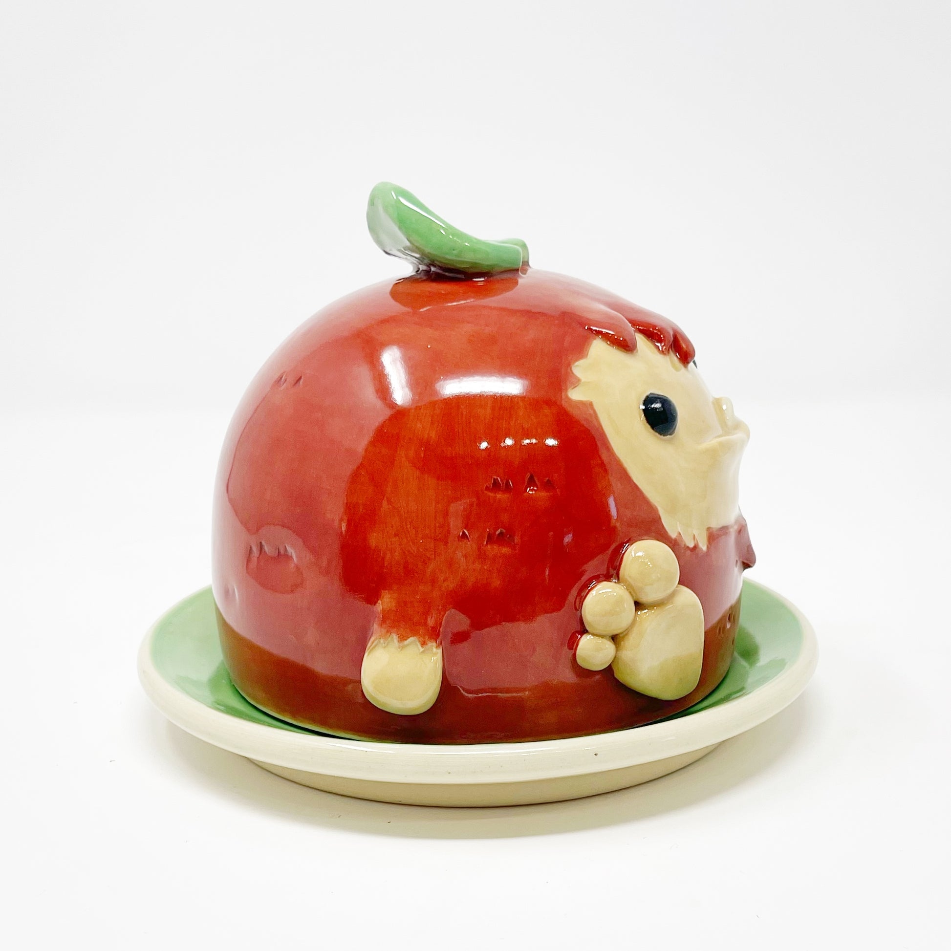 This butter dish is lovingly created on the wheel and the details are built on by hand. The plate is made with a raised lip to keep your pad of butter in place and protect against the moving lid.
