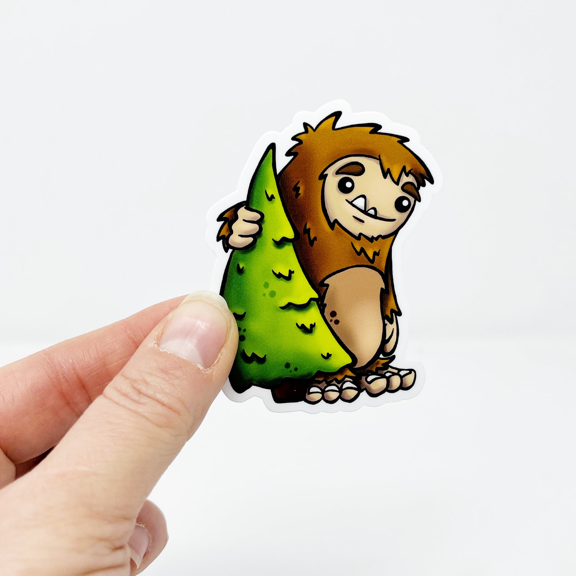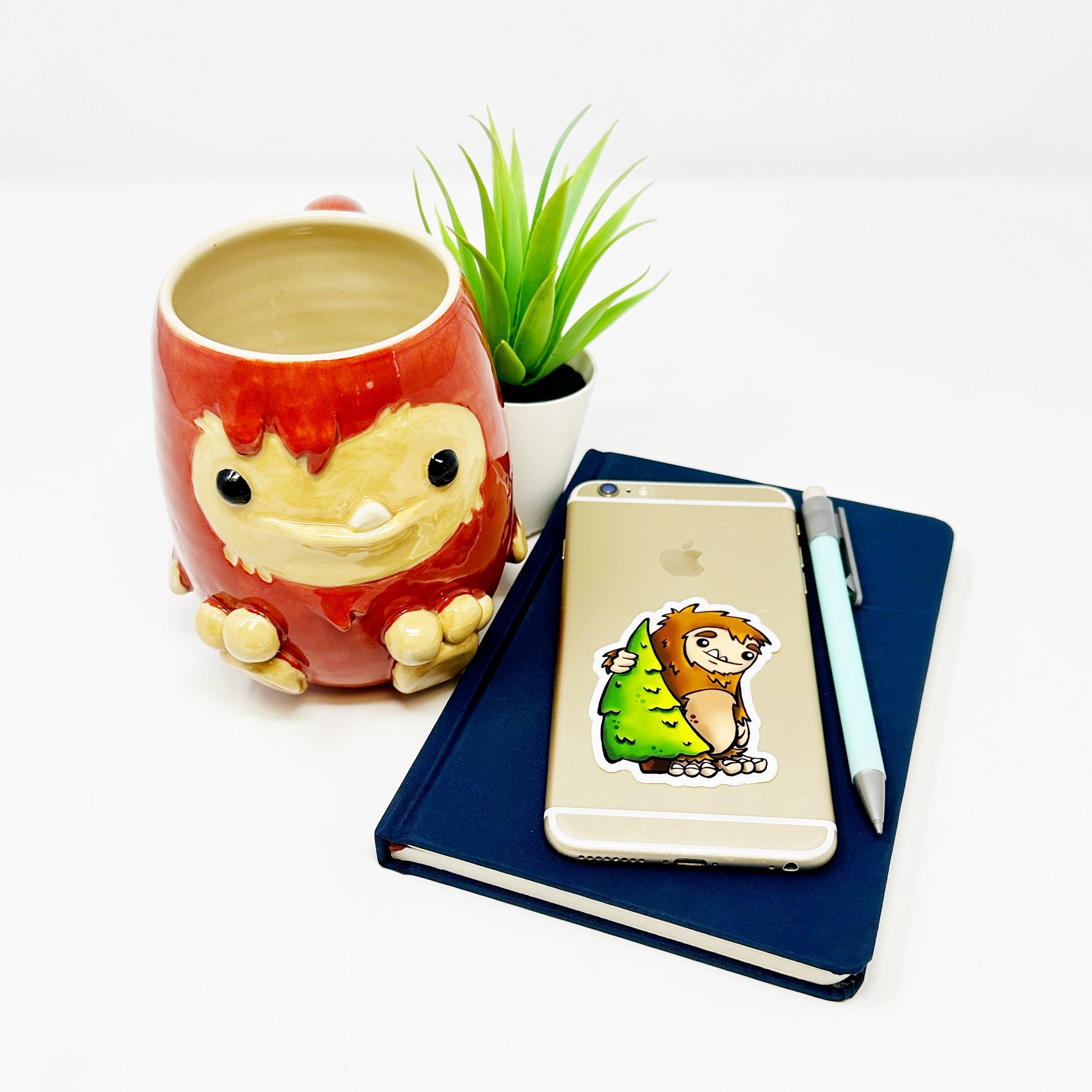 Adorable illustrated Sasquatch die cut vinyl sticker.