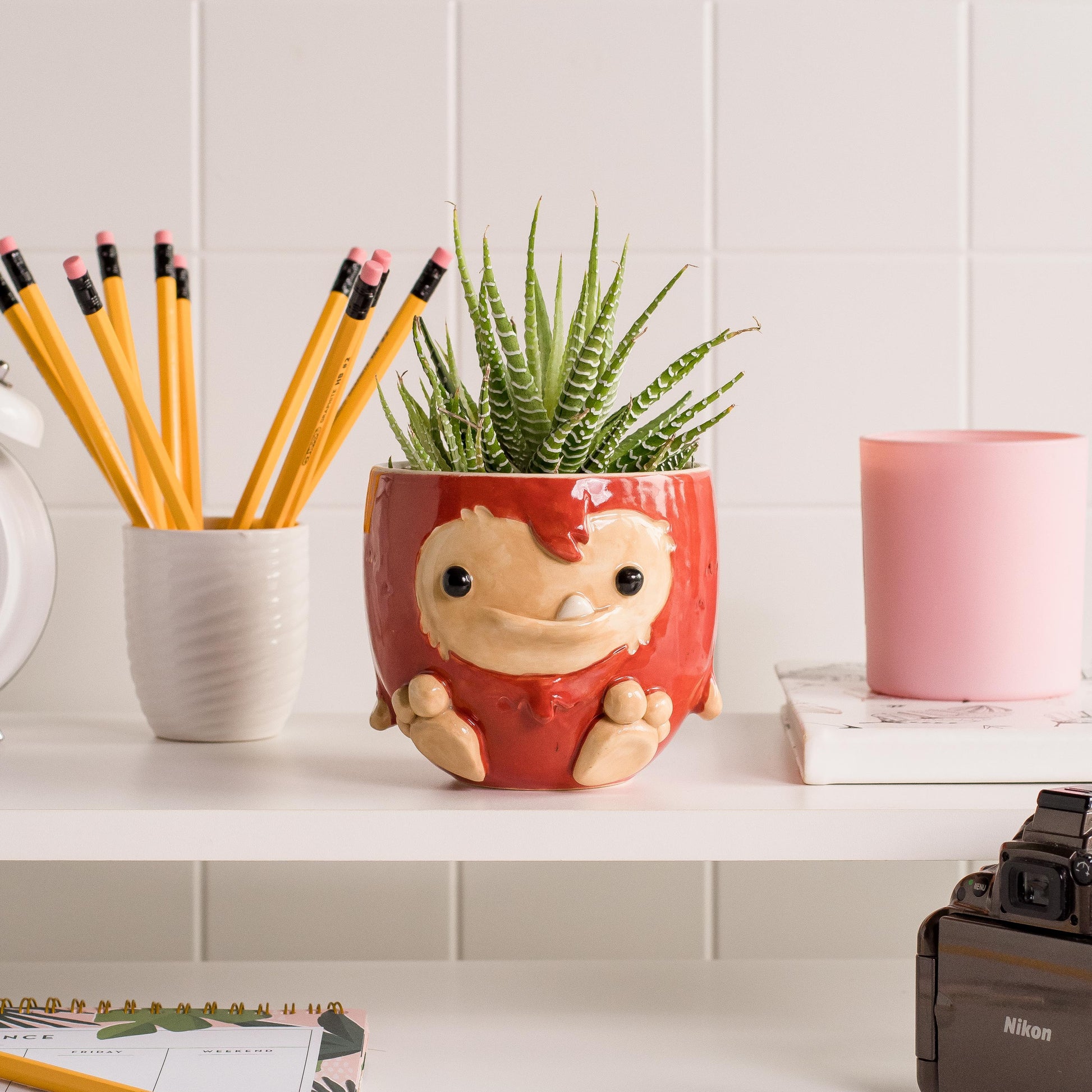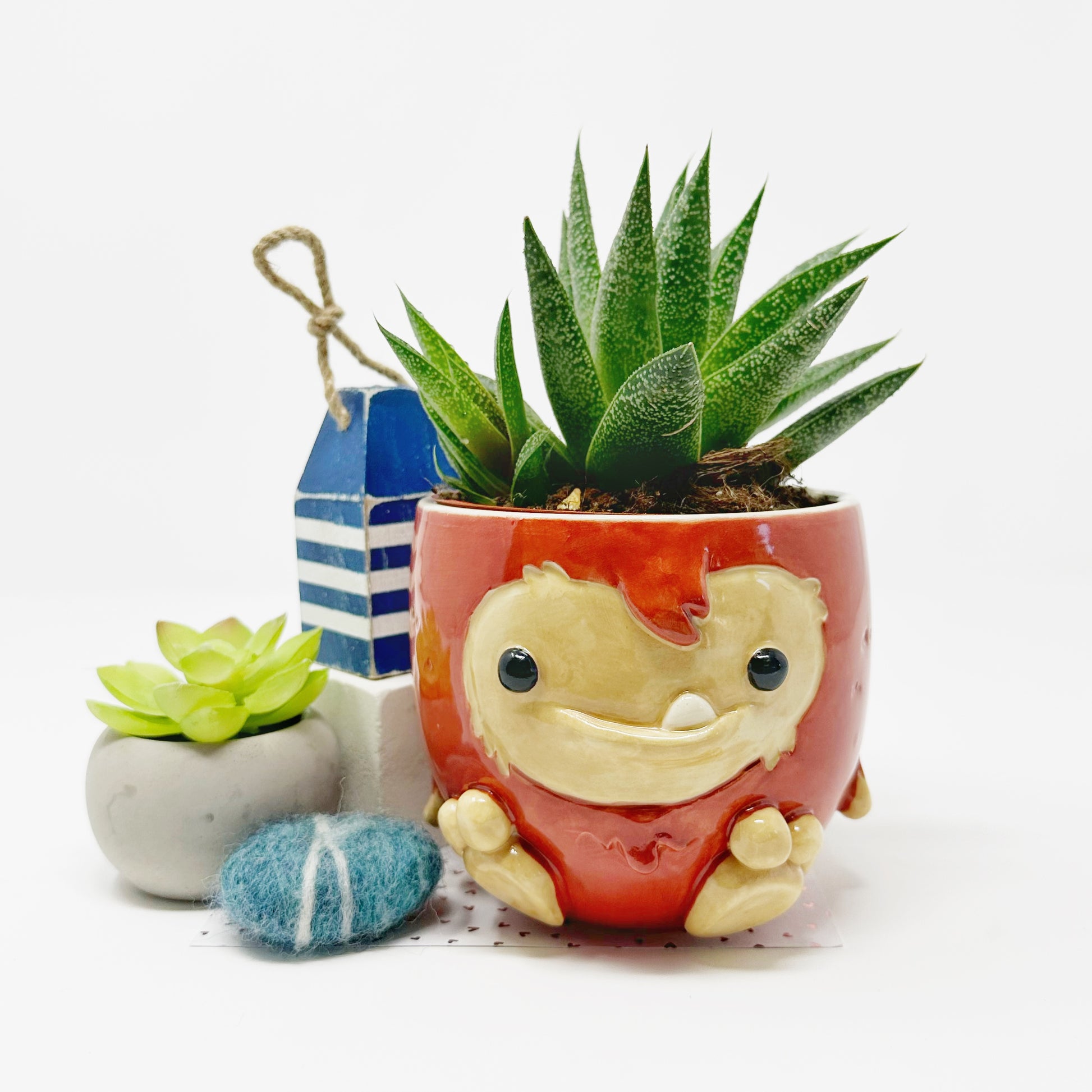 This delightful otter planter is a perfect addition to your living room, home office or bathroom. It is lovingly crafted by throwing the base form on a potters wheel and then the details are hand built individually and added with care and precision. Standing at 4” tall and approximately 4” wide it will hold a succulent or two or a small leafy plant. This planter does not have drainage holes but is deep enough to accommodate a 4" nurse pot or you can add Pearlite or rocks to create sufficient drainage.