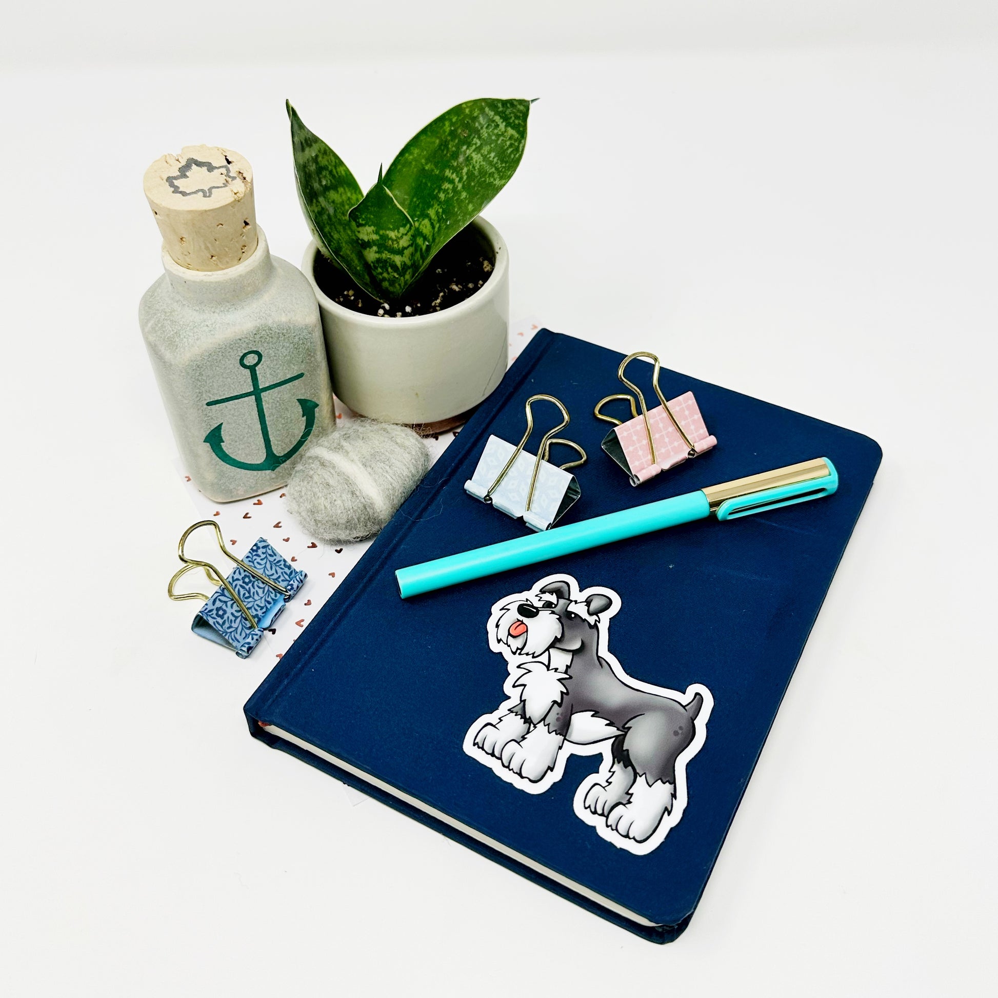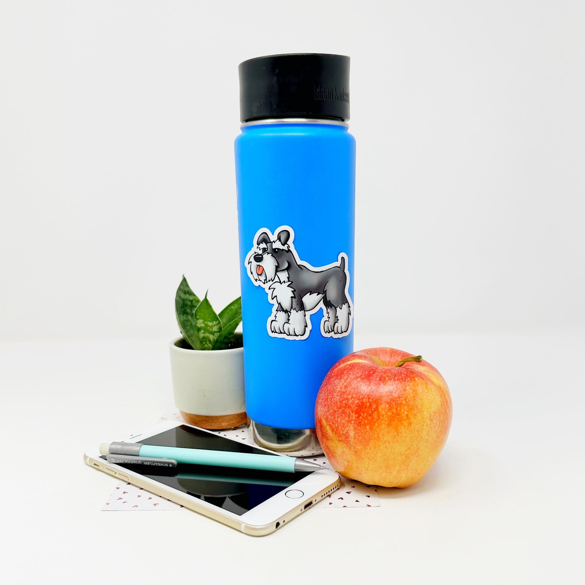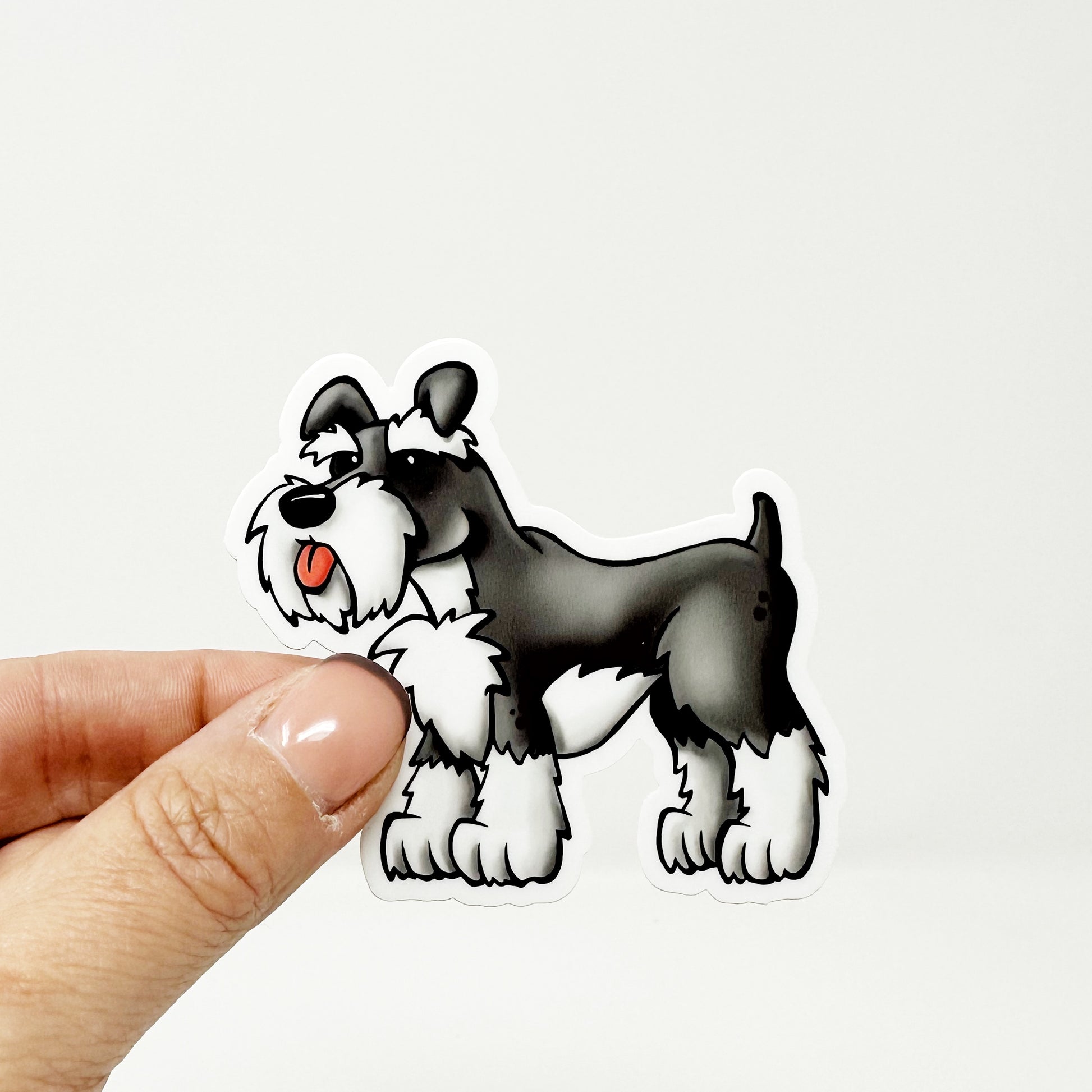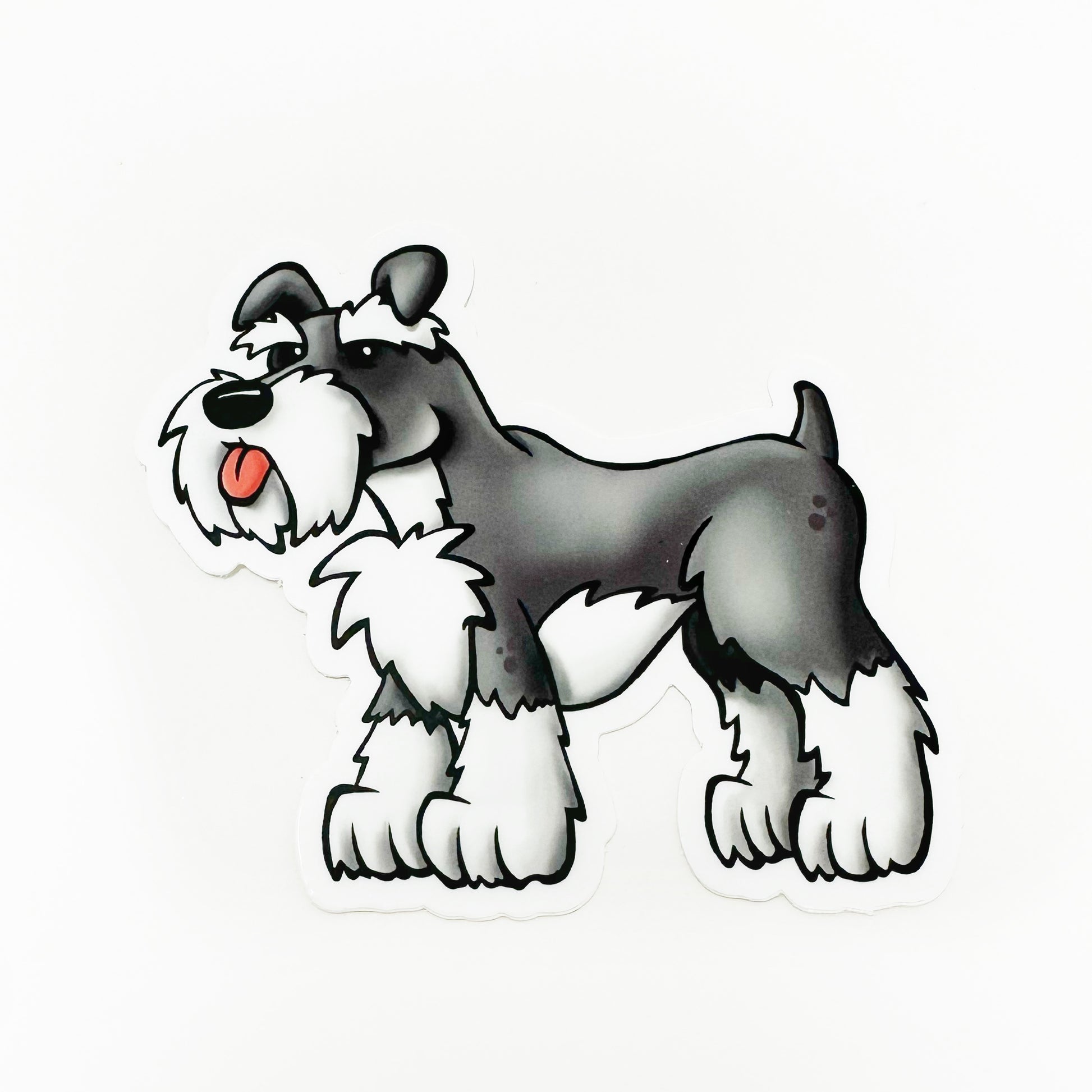 Adorable illustrated schnauzer die cut vinyl sticker.