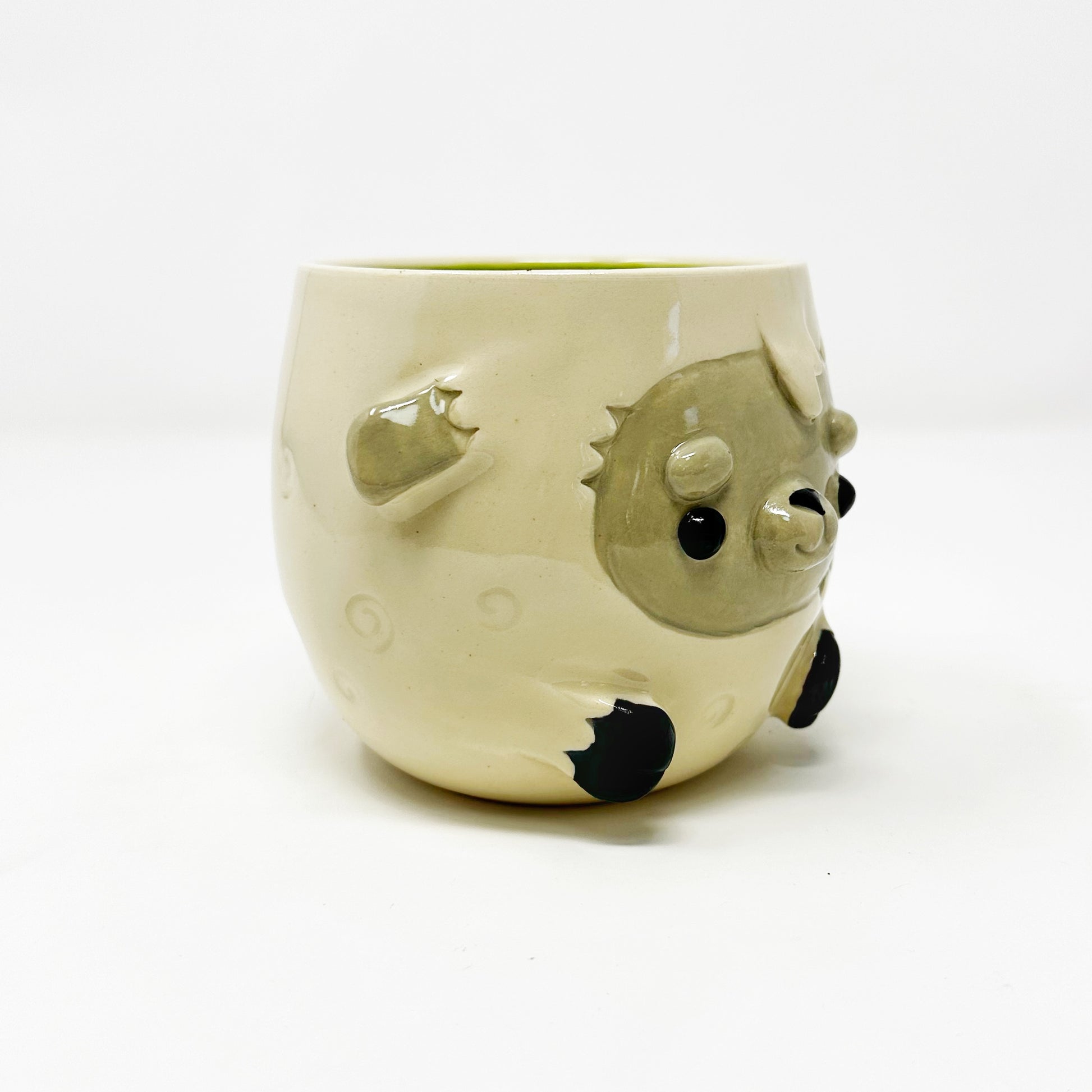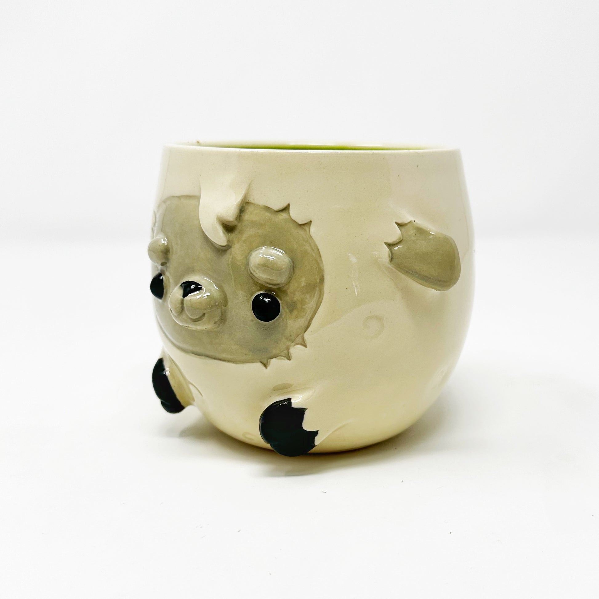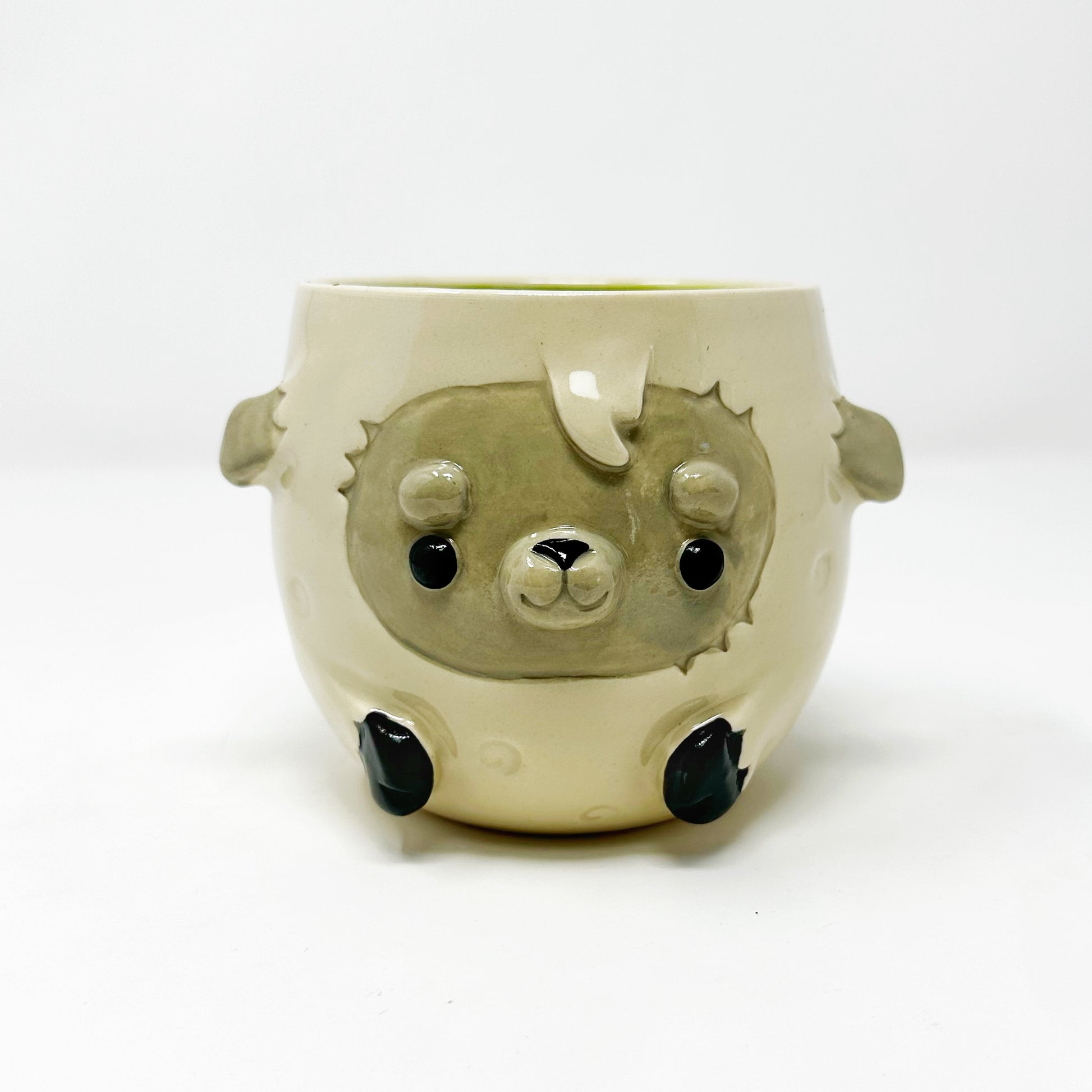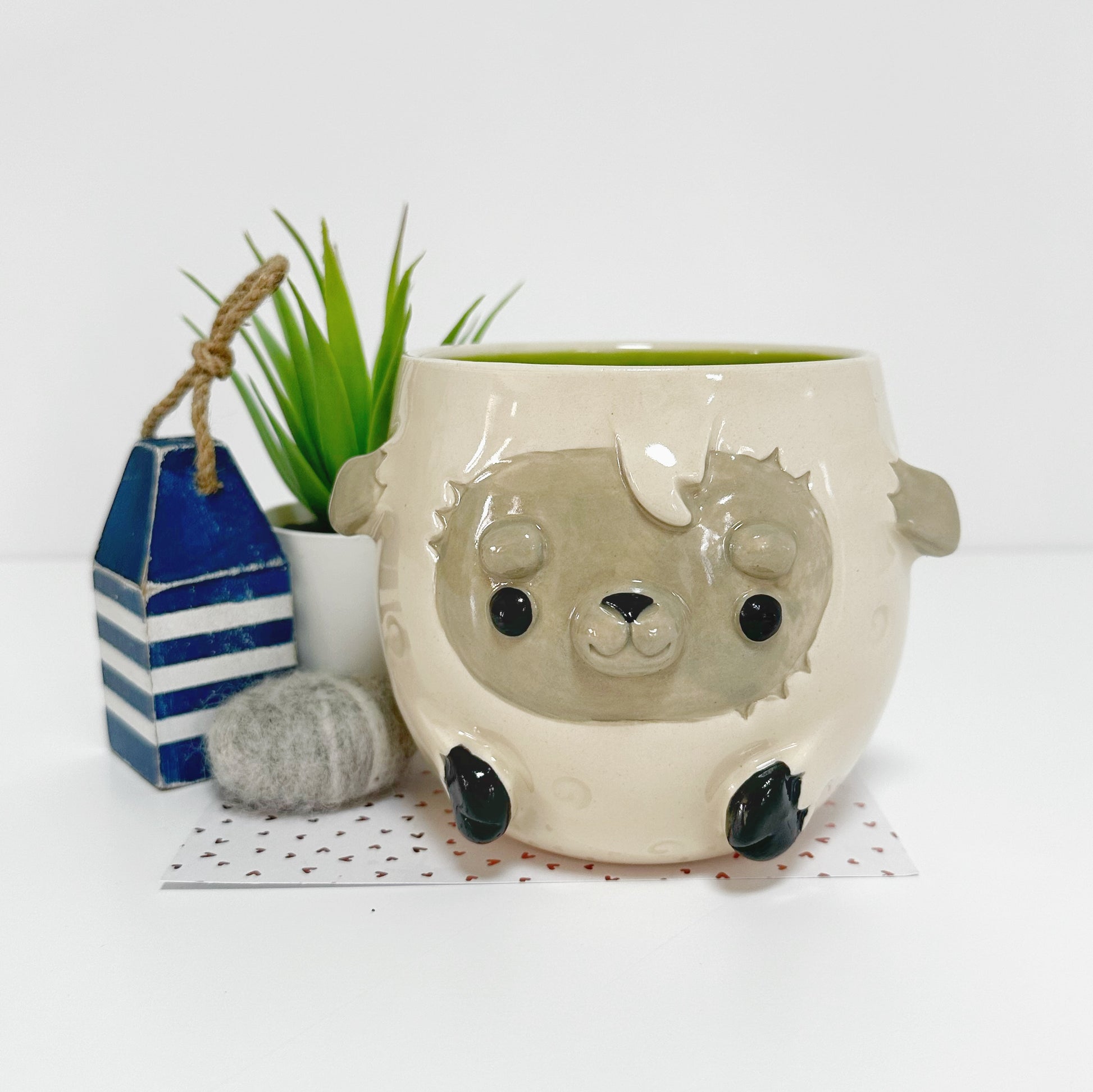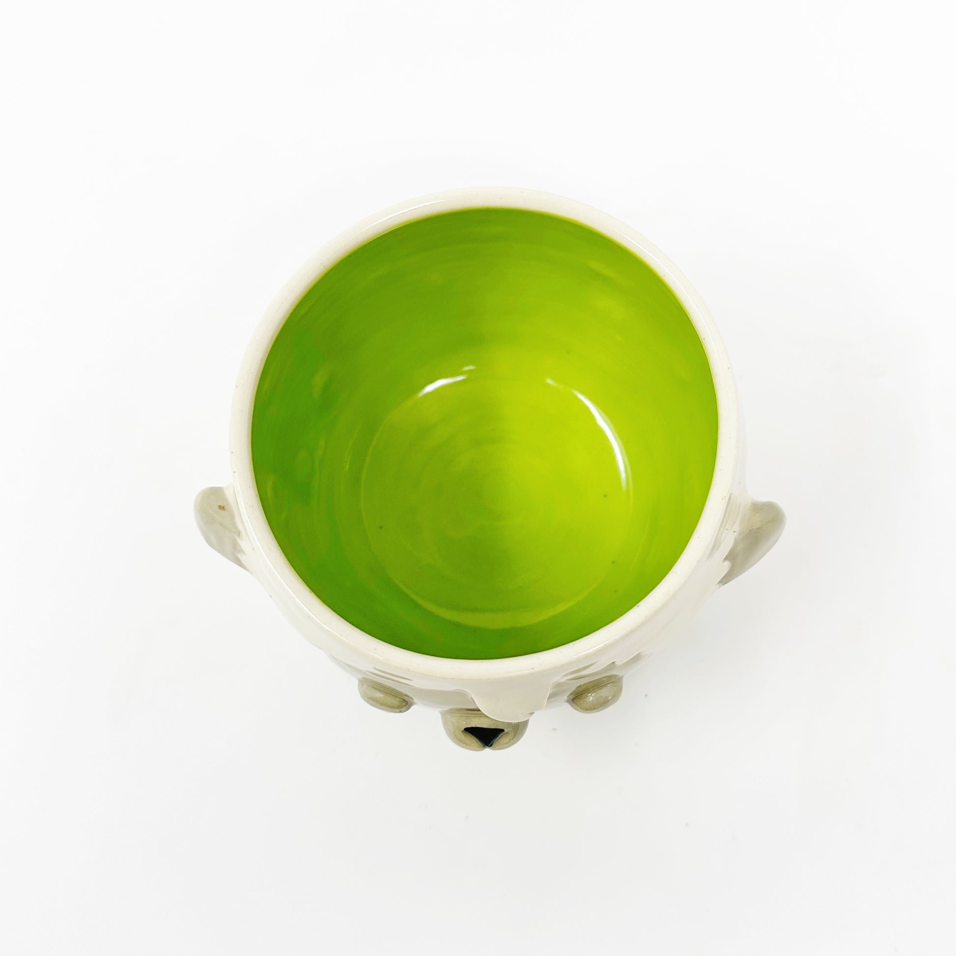 Our bowls are lovingly created on the wheel and then the features are built on by hand. Since all of our items are built one at a time, no two are exactly the same. Our creations are also hand painted adding to the unique design on every piece. You may be able to see our hands at work in the brush strokes of the glaze.