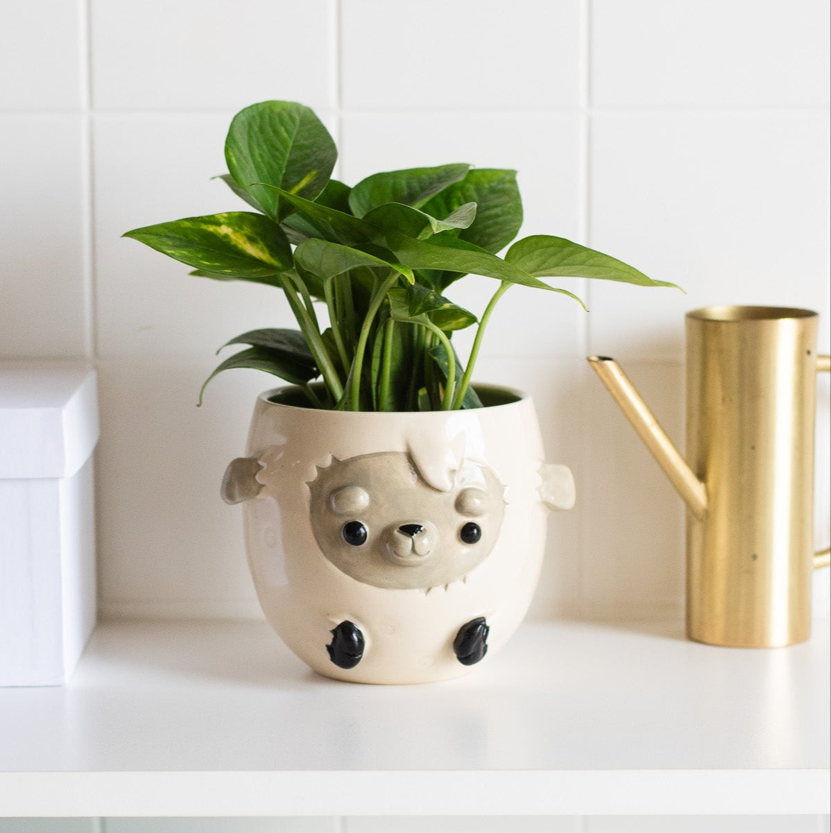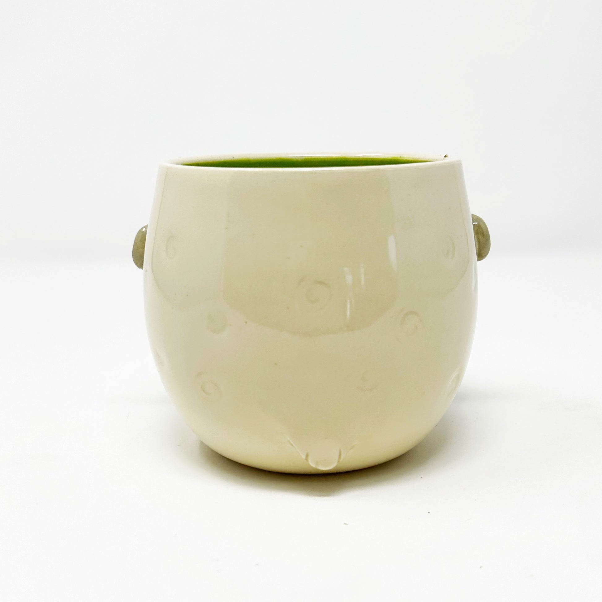 Standing at 4” tall and approximately 4” wide it will hold a succulent or two or a small leafy plant. This planter does not have drainage holes but is deep enough to add Pearlite or rocks to create sufficient drainage.
