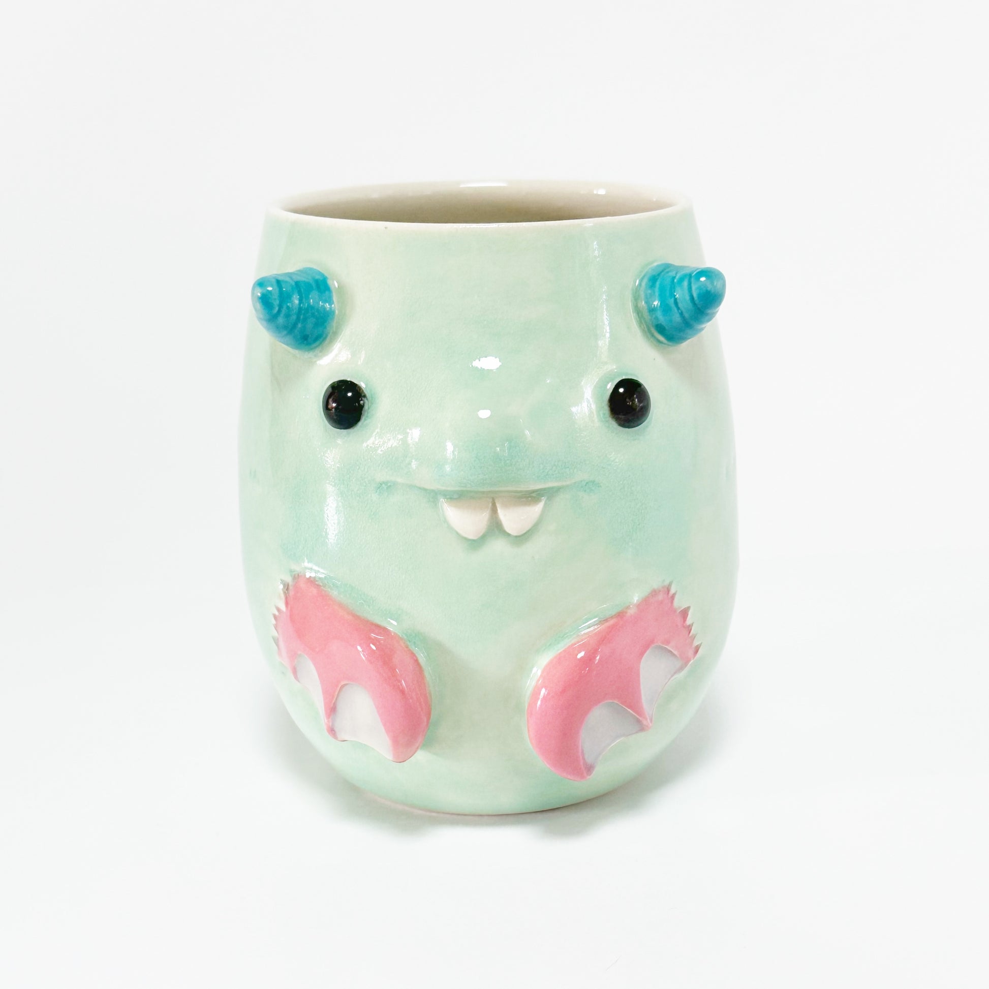 This mug is lovingly created on the wheel and then the features are built on by hand. Since all of our creations are built one at a time, no two are exactly the same. Our products are also hand painted adding to the unique design on every creation. You may be able to see our hands at work in the brush strokes of the glaze. You may also notice some texture in spots. This is part of our handmade quality and the uniqueness to every piece.