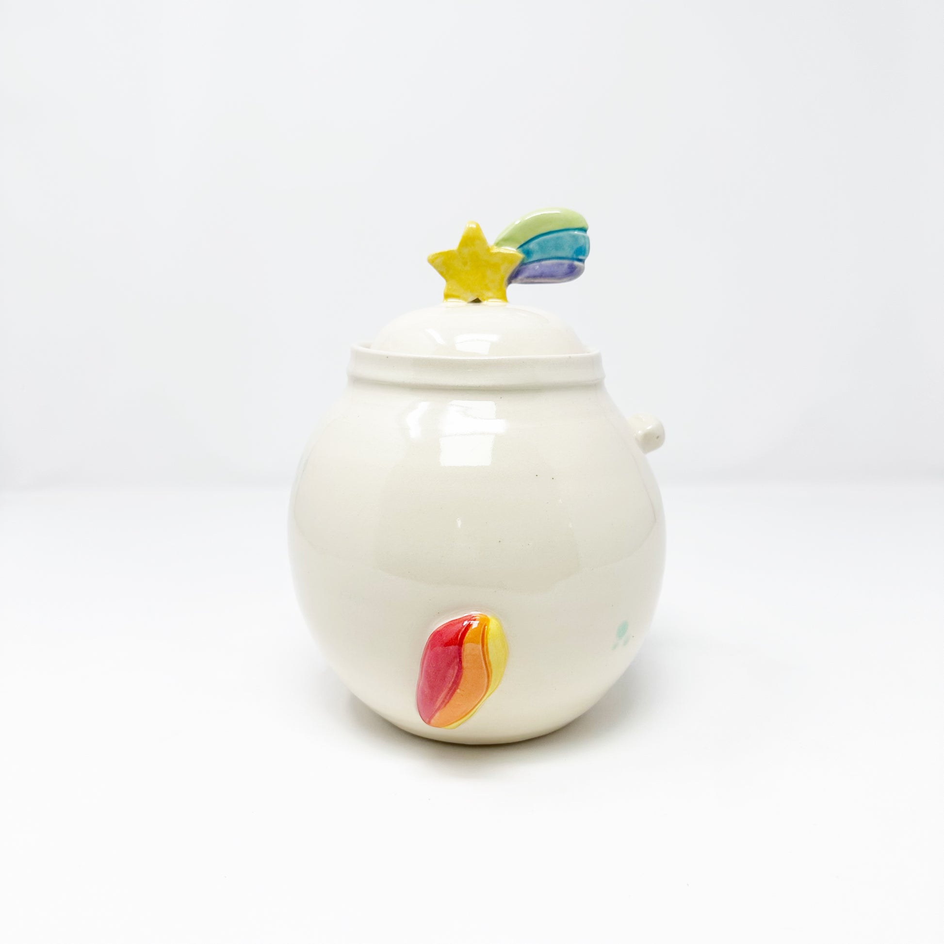 This item is lovingly created on the wheel and then the features are built on by hand. Since all of our creations are built one at a time, no two are exactly the same. Our products are also hand painted adding to the unique design on every creation. You may be able to see our hands at work in the brush strokes of the glaze. You may also notice some texture in spots. This is part of our handmade quality and the uniqueness to every piece.