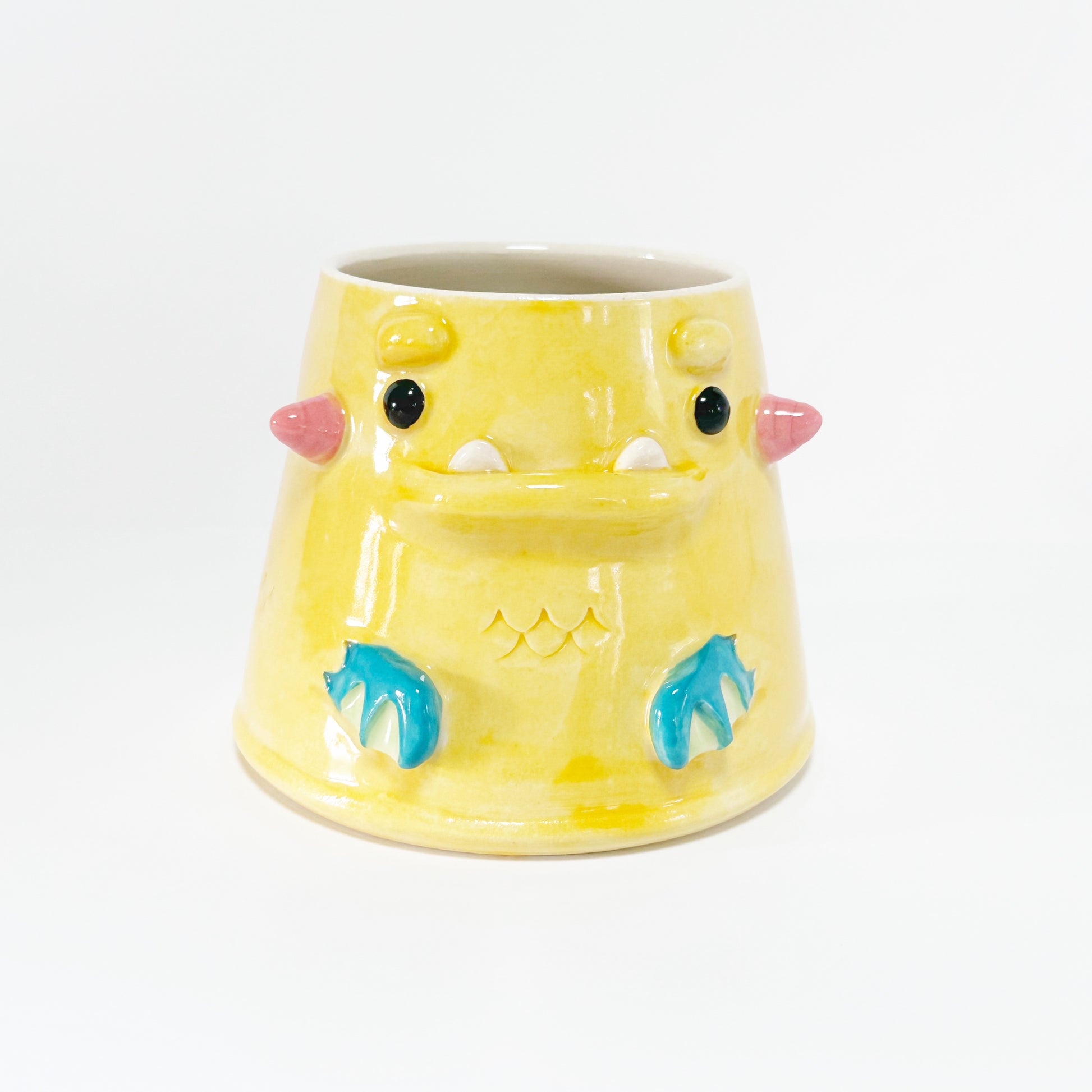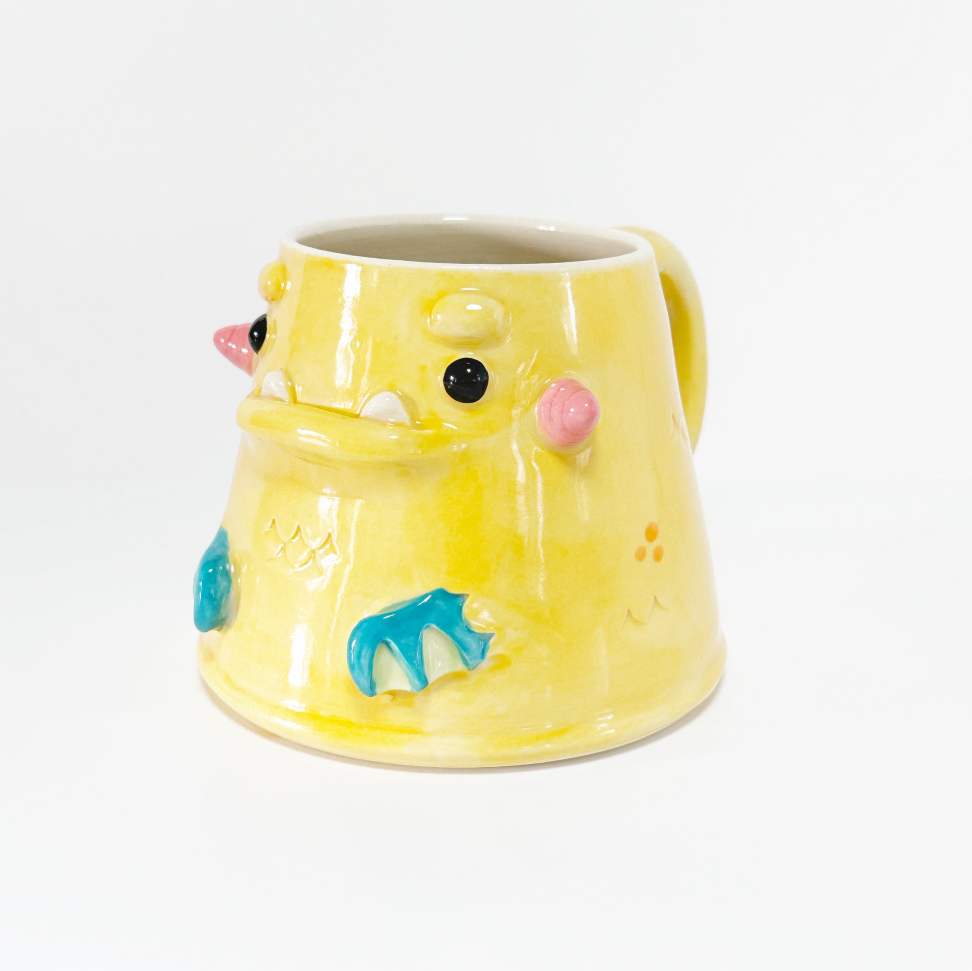 This mug is lovingly created on the wheel and then the features are built on by hand. Since all of our creations are built one at a time, no two are exactly the same. Our products are also hand painted adding to the unique design on every creation. You may be able to see our hands at work in the brush strokes of the glaze. You may also notice some texture in spots. This is part of our handmade quality and the uniqueness to every piece.